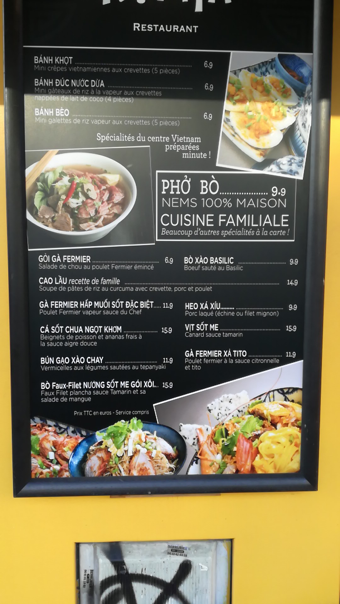 Excellente cuisine vietnamienne sur place et un évent des catacombes dans les toilettes !!!! A chaque fois que je Viens, je me souviens de ma belle-mère dans la cuisine du restaurant familial de Poitiers.
