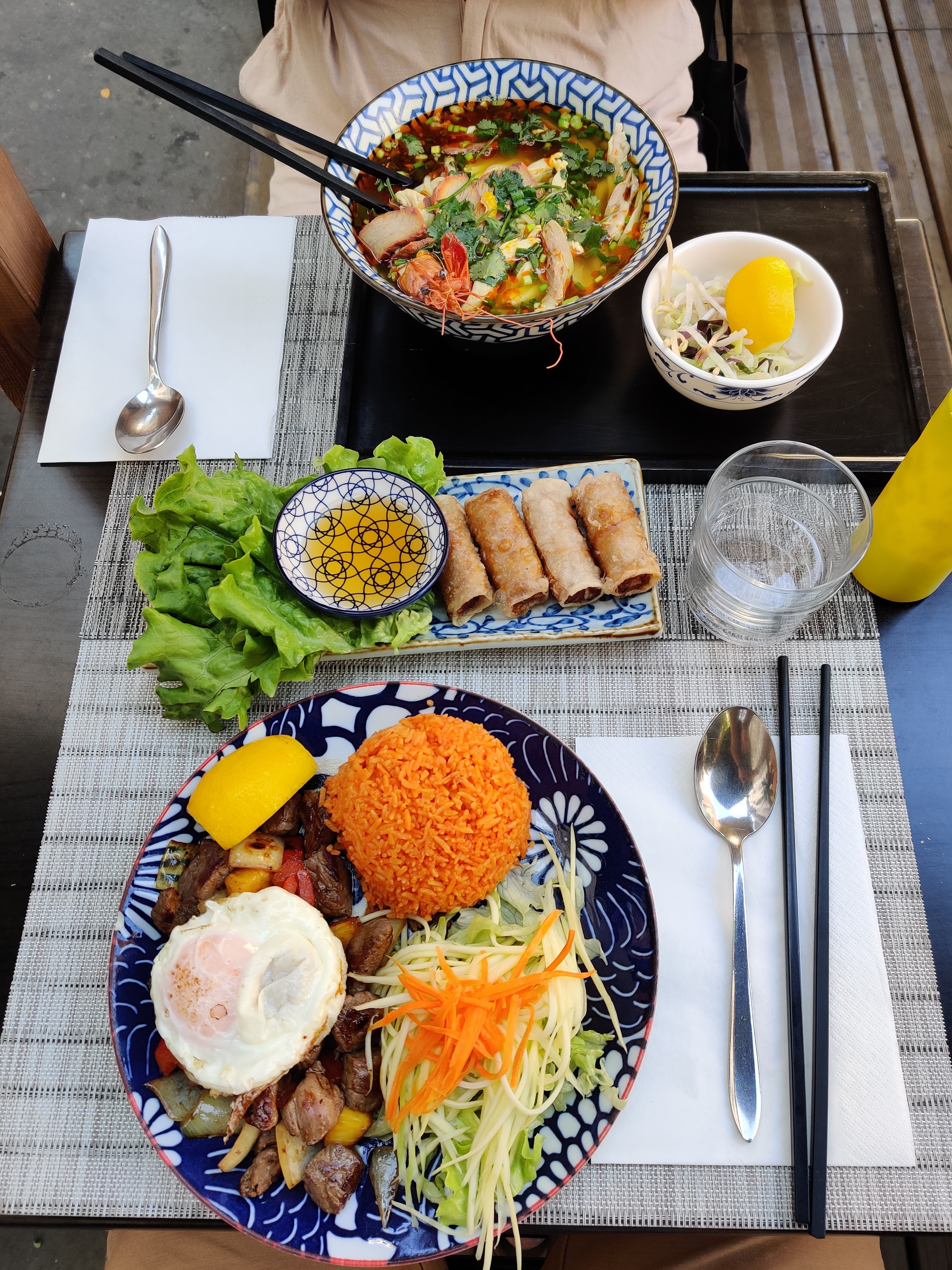 Très bien accueilli, en ce 1er mai. Très bonne cuisine vietnamienne. Place en terrasse semi-ouverte. Paiement en C.B. Super.