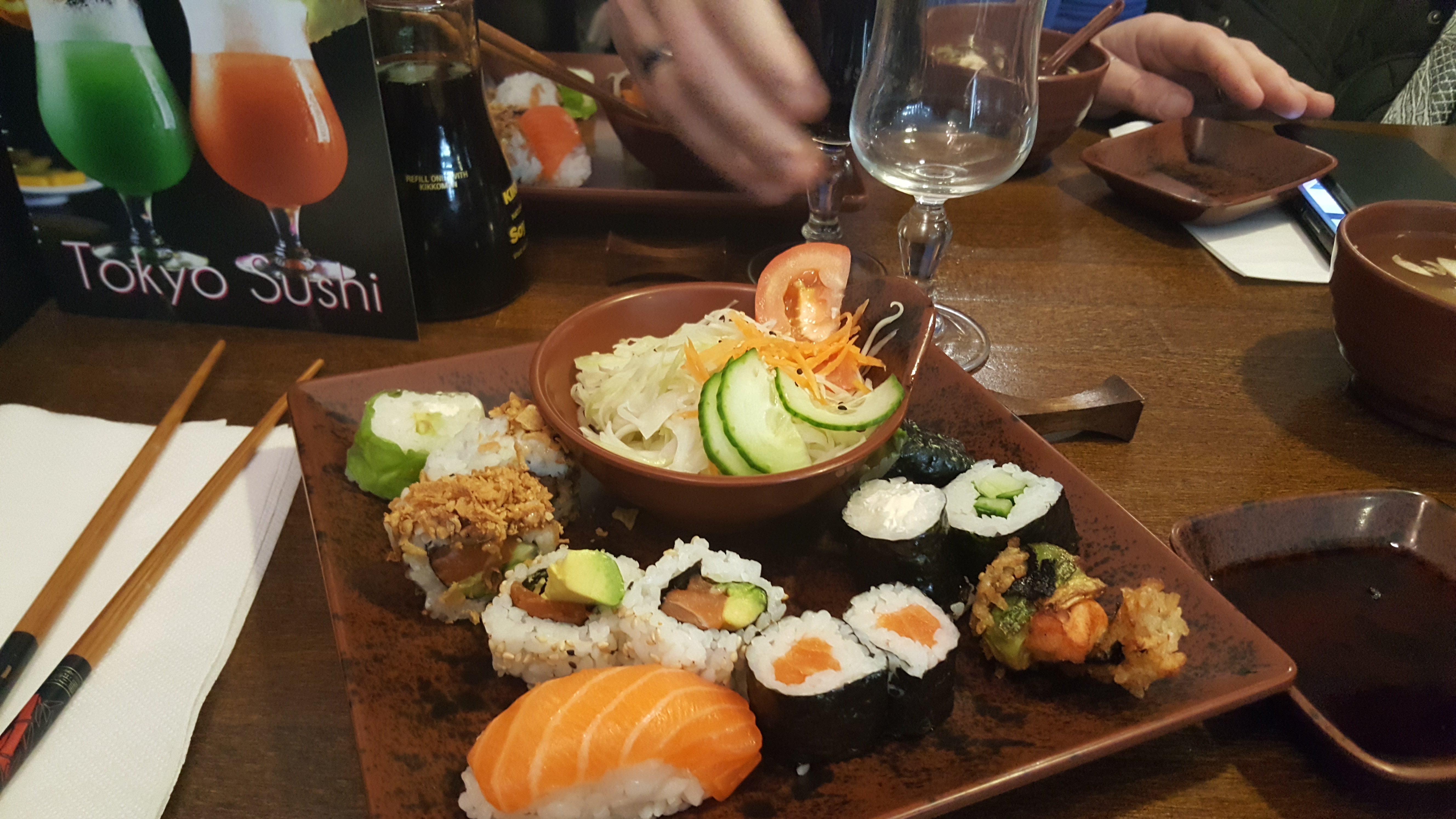 Nous avons passé un très bon moment au Sushi Tokyo. J'ai l'habitude de faire les restaurants japonais et je dois avouer que ceux de ce restaurant étaient vraiment bons et frais !! Cela vaut vraiment le coup. Il y en a pour tous les goûts, saumon, thon, thon cuit, végétarien, des brochettes de viande, de champignons, des salades et différents desserts. Les tables sont suffisamment espacées pour être à l'aise, les cocktails sont bons. Je recommande !!