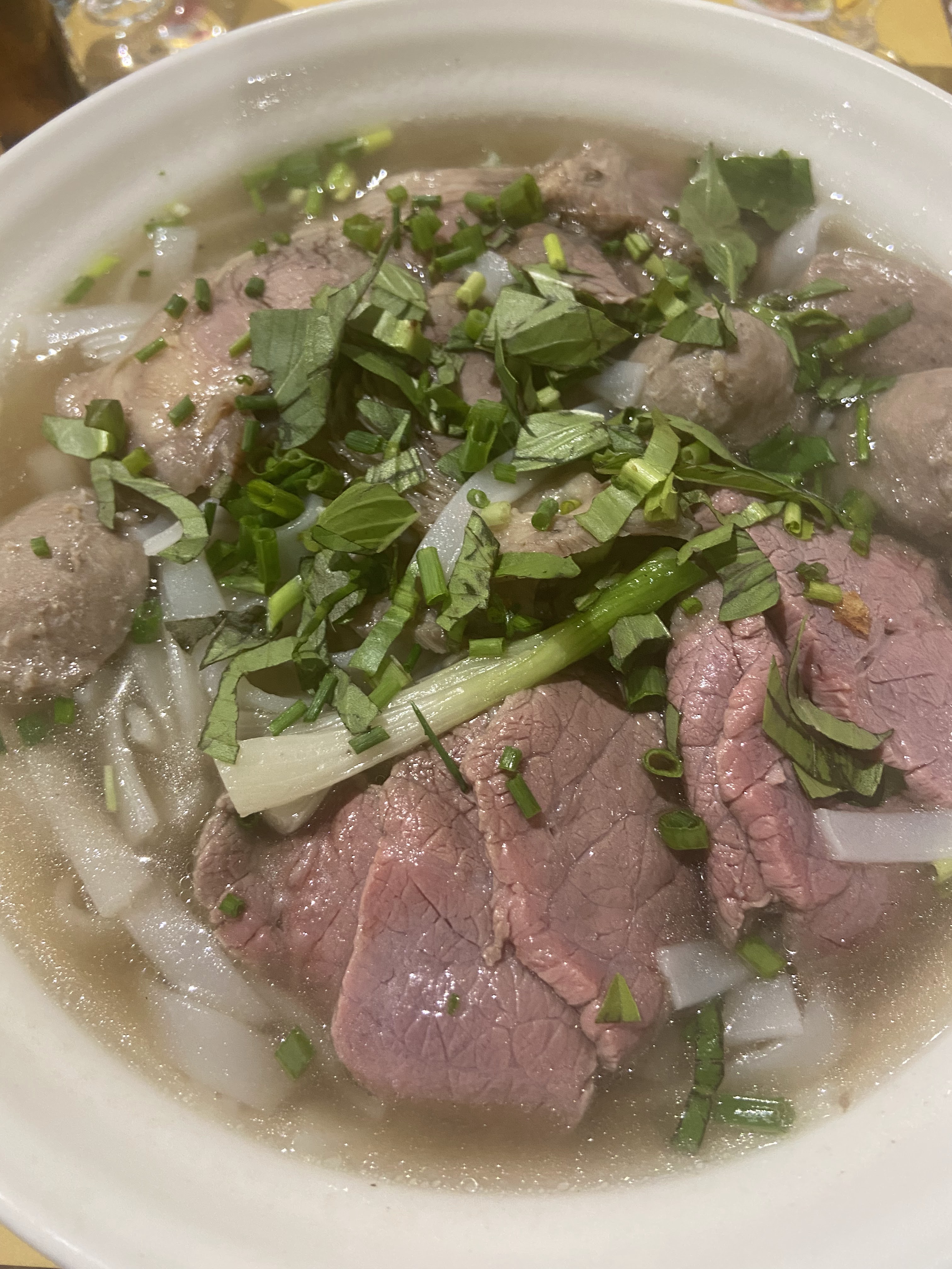 J'ai pris en entrée des banh cuon et un pho bo. L'entrée était exceptionnelle et c'était très copieux. Concernant le pho, très bon aussi et copieux. La salle est grande et propre. Le service est rapide et très aimable. Je reviendrai pour goûter les autres plats!