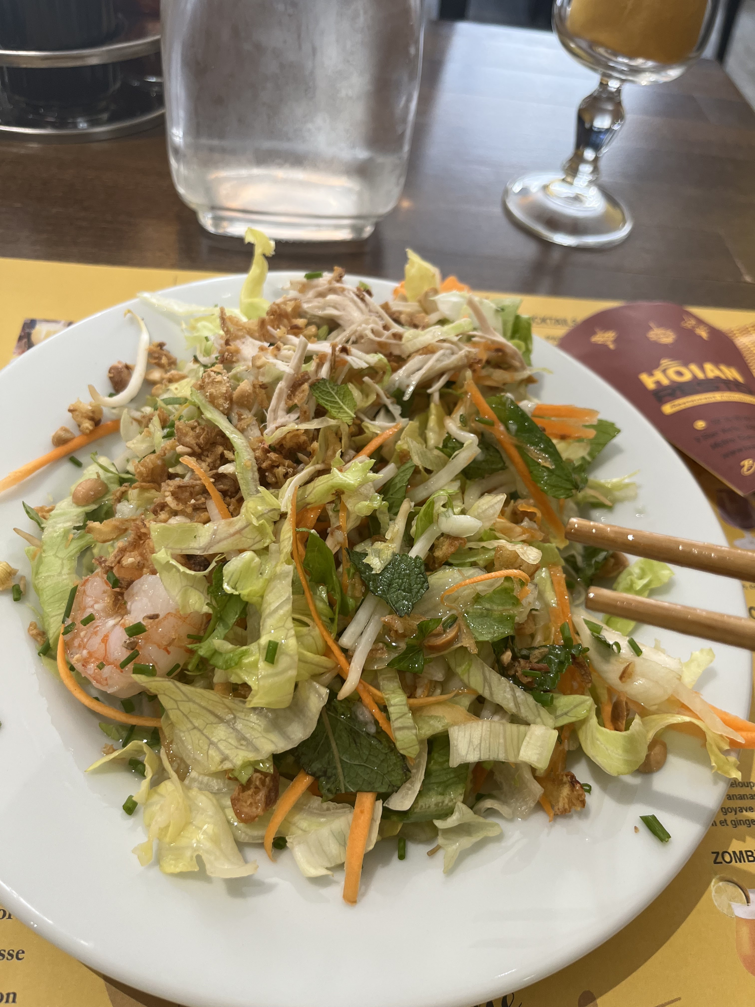 Et bien, cela fait longtemps que je n'ai pas manger dans un restaurant comme celui-ci, vous savez le genre de restaurant que on vient pas pour la décoration, ni pour ses plat Instagramable (quoi que), mais juste pour le plat. C'est un délice, les plat sont frai et tipique du Vietnam. Si vous voulez découvrir des saveurs du Vietnam 🇻🇳 c'est ici que vous devriez goûter. Le personnel se donne à font, nous demande à chaque étape si tout se passe bien et font très attention aux risque potentiel d'allergie que peuvent posséder certains clients. Ici vous trouverai du réconfort et de la légèreté, du repas fait maison Vietnamienne. Essayer donc, vous tomberiez peut être amoureux ? Tous se que je souhaite a se restaurant c'est qu'il évolue et reflète la chaleur et la légèreté du plat à l'image de la décoration. Merci