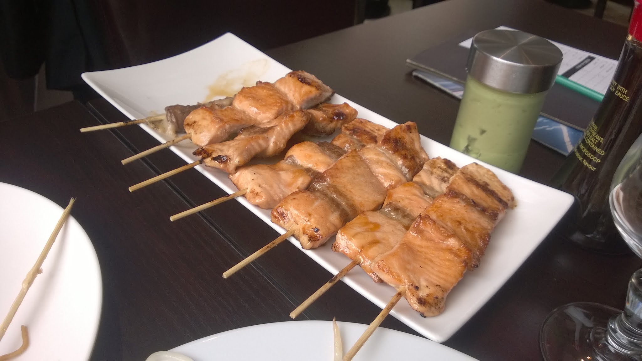 Là serveur ne veut pas vous dire combien de pièces au maximum de peur que vous ne commenciez trop. Les sushis ne sont pas top Les brochettes de saumon sont grasses Le personnel qui vous surveille ou cas où vous partez sans payer quand vous êtes installé en terrasse Je ne recommande pas