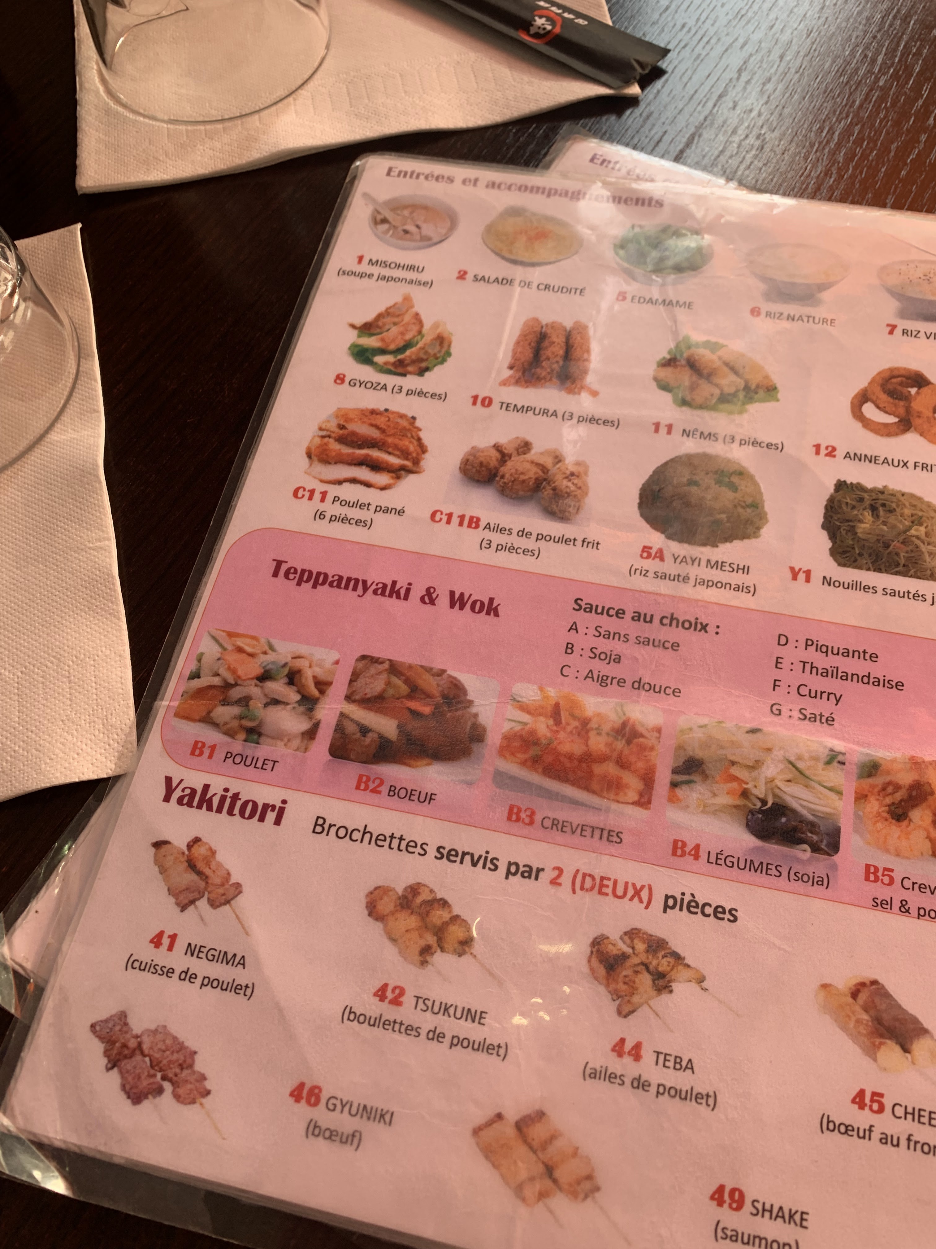 Fuyez ! Service incompétent, mal aimable, communication très difficile en français, penser à faire un stage de chinois avant de vous rendre dans ce restaurant. De toute façon vous devrez écrire vous même sur le bon de commande de la serveuse. Nourriture étrange, gyoza au porc au goût de crevette, sûrement une nouvelle recette... Nems au goût peu commode. Les brochettes très certainement grillées sur une plancha qui n'a jamais été lavé ont un goût de graisse brûlées, elle vous seront bien évidemment servi sans sauce. Ne parlons pas du prix indécent de 17,90€ (que vous devrez payer avant d'être servi) face à cette qualité médiocre.