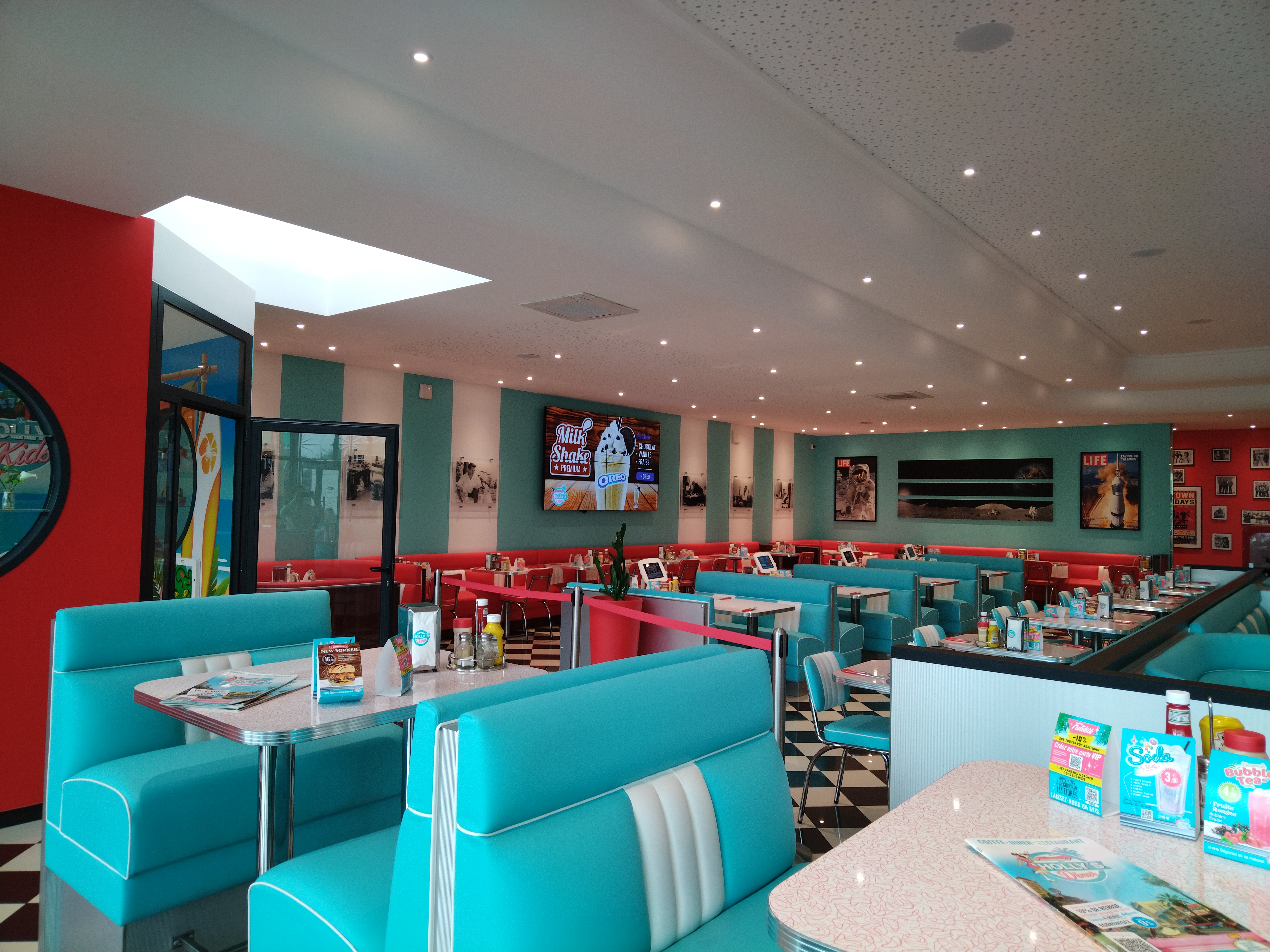 Très bon restaurant dans le thème des diner américains des années 50-60. La qualité et le gout des produits est excellent ainsi que le service (gros big-up à Patrick). Le restaurant est moderne (possibilité de payer l’addition depuis son téléphone grâce à un QR code sur la table) et adapter aux enfants (tablette tactile sur certaines tables, et un espace jeux dédié pour eux). Je recommande vivement.