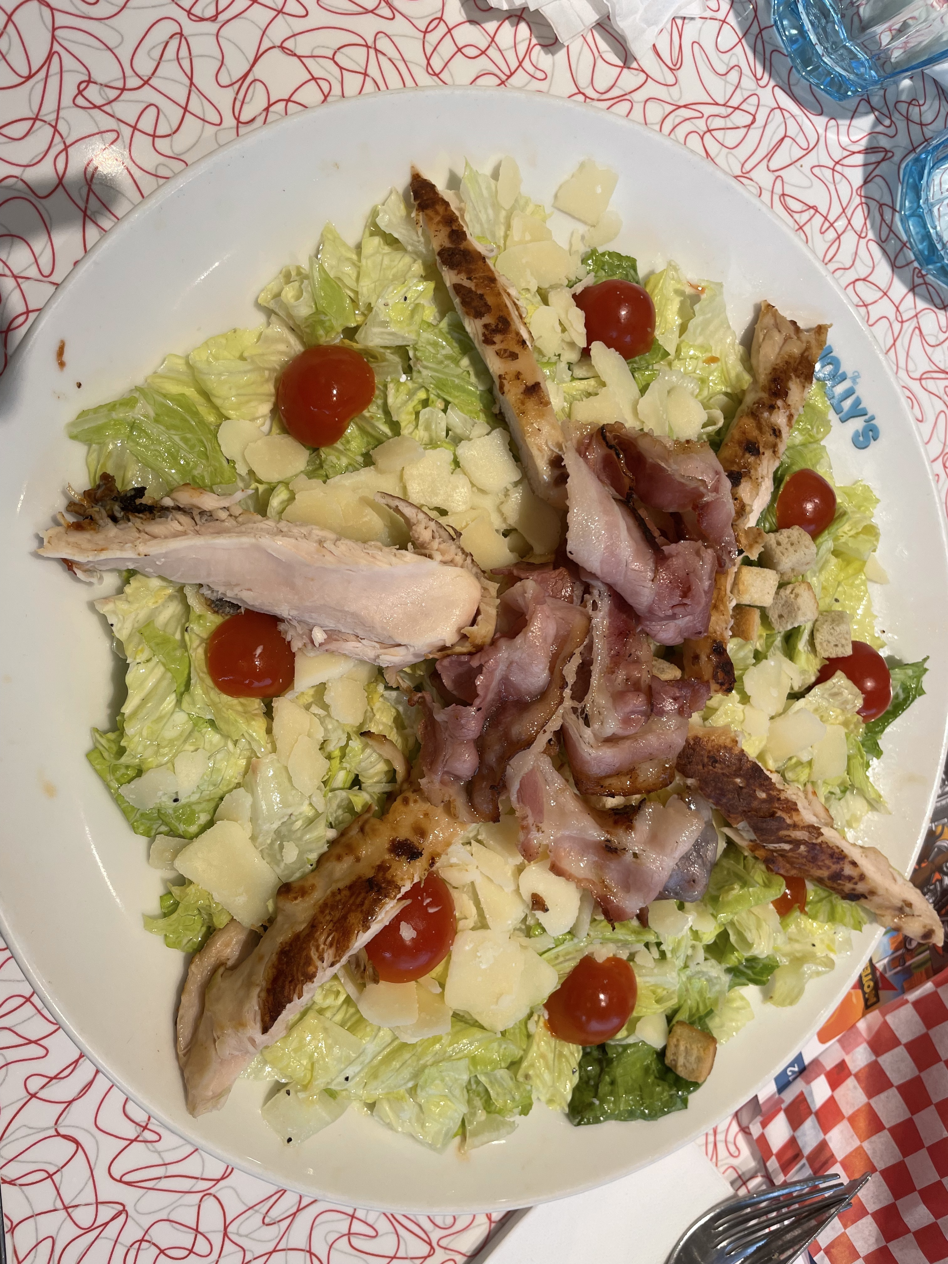 repas le midi entre collègue. Un peu la folie avec beaucoup d'enfant (jour férié), mais l'ambiance est vraiment typique et les plats plutôt bon prix pour la quantité. La salade ceasar a vraiment le goût typique comme on peut manger aux USA. Les burgers sont copieux. L'ambiance est bonne pour ceux qui veulent se retrouver aux USA pendant un instant.