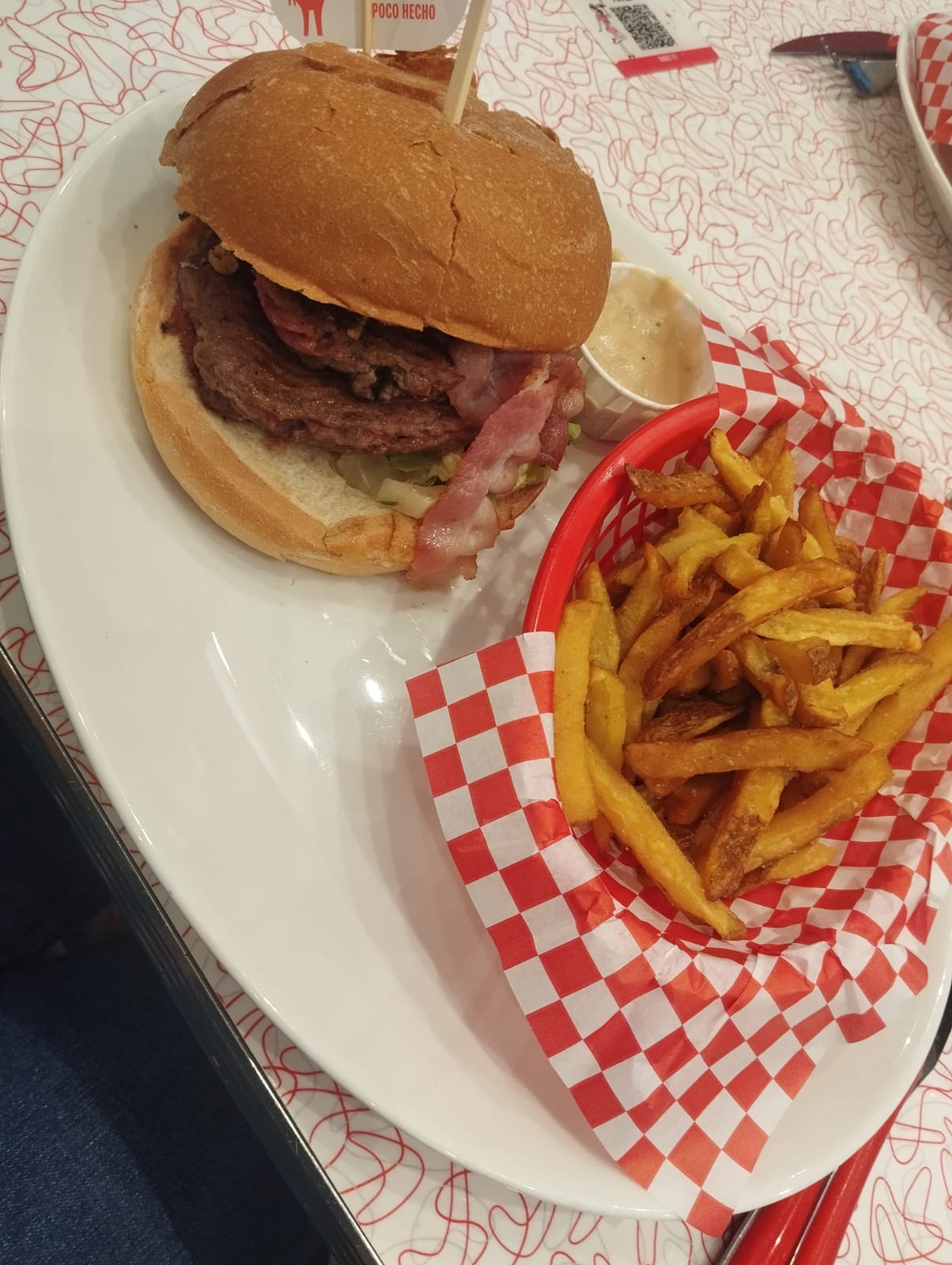 Endroit façon vieux Dinner américain. Plats aux portions tout juste correct, prix non excessifs. Le service était parfait et très rapide malgré le monde. Je vous conseil vivement de reserver si vous le pouvez car c'est bondé vraiment très rapidement. Attention à la zone de jeu pour les enfants (au fond à droite du restaurant).