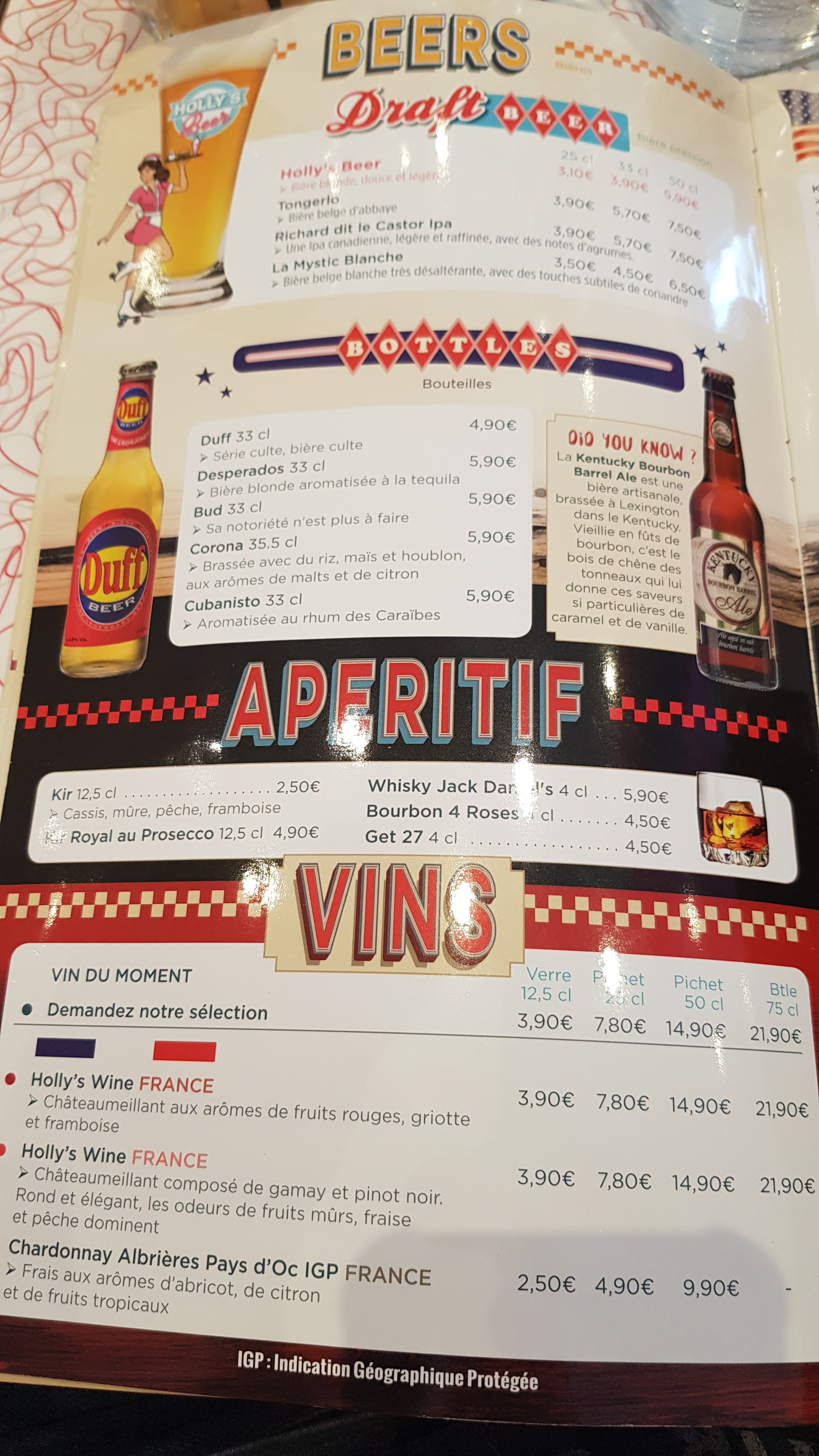 Pour un repas en amoureux De la st Valentin c’était parfait . Nous adorons l’ambiance américaine la déco année 50´s La qualité des cocktails est top une piña collada et un moscow mule au top. Les frites fraîches délicieuses la cuisson de la viande top et le service qu’épée sympa. N’hésitez pas à laisser un pour boire ! Ils le méritent tous franchement à vous de comparer tous ses points ! Rapport qualité prix quantité et sympathie ! A 200% À bientôt