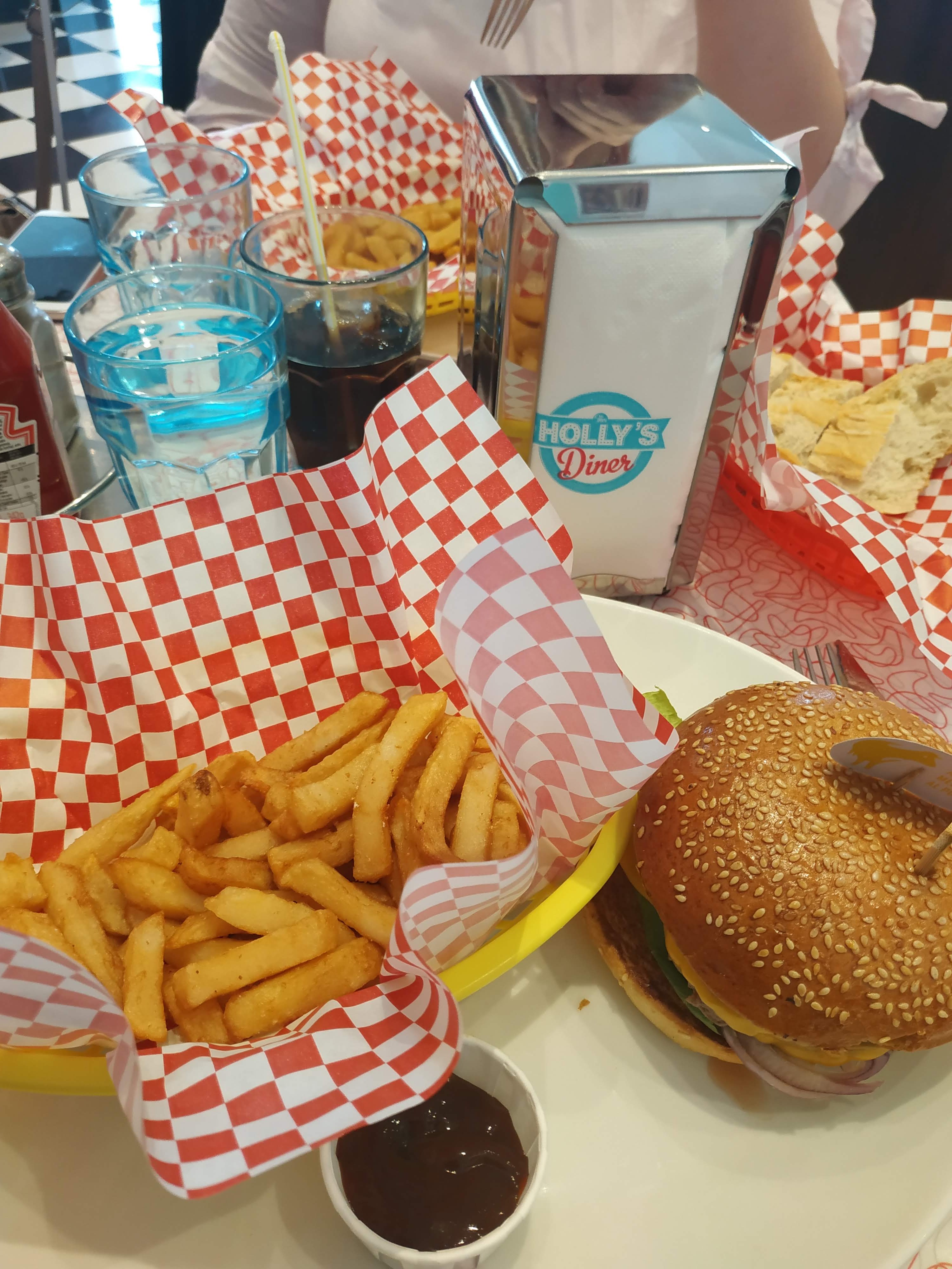 Nous sommes allés en famille au Holly's Diner début octobre. Nous avons particulièrement apprécié la propreté impeccable du lieu, et le respect des mesures COVID (nettoyage systématique des cartes). Service trés sympathique et les burgers trés bons ! Nous reviendrons ! Bravo à vos équipes