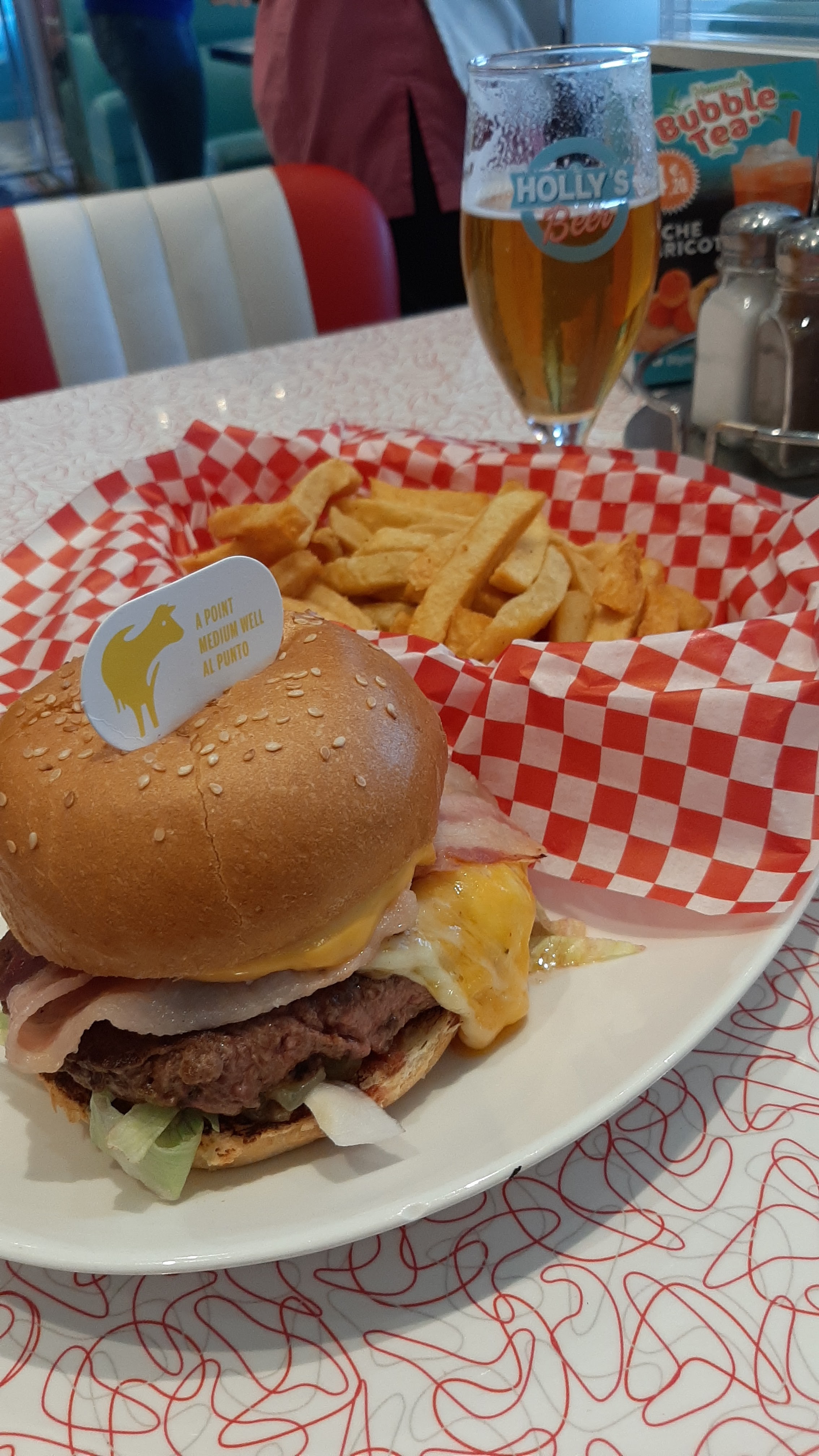 Cadre et ambiance très sympa. Les serveuses évoluent dans des tenues à l'Américaine colorées. Le personnel est bienveillant l'accueil est des plus chaleureux. La carte offre une multitude de burger composés de pain, viande et ingrédients de qualité. Vous pouvez aussi opter pour des viandes bavette, ribs de porc ... Le service est rapide malgré l'affluence. Nous avons pris 4 burger différents et nous n'avons pas été déçus. Les desserts sont très bon également. En résumé une bonne adresse avec dépaysement garanti.
