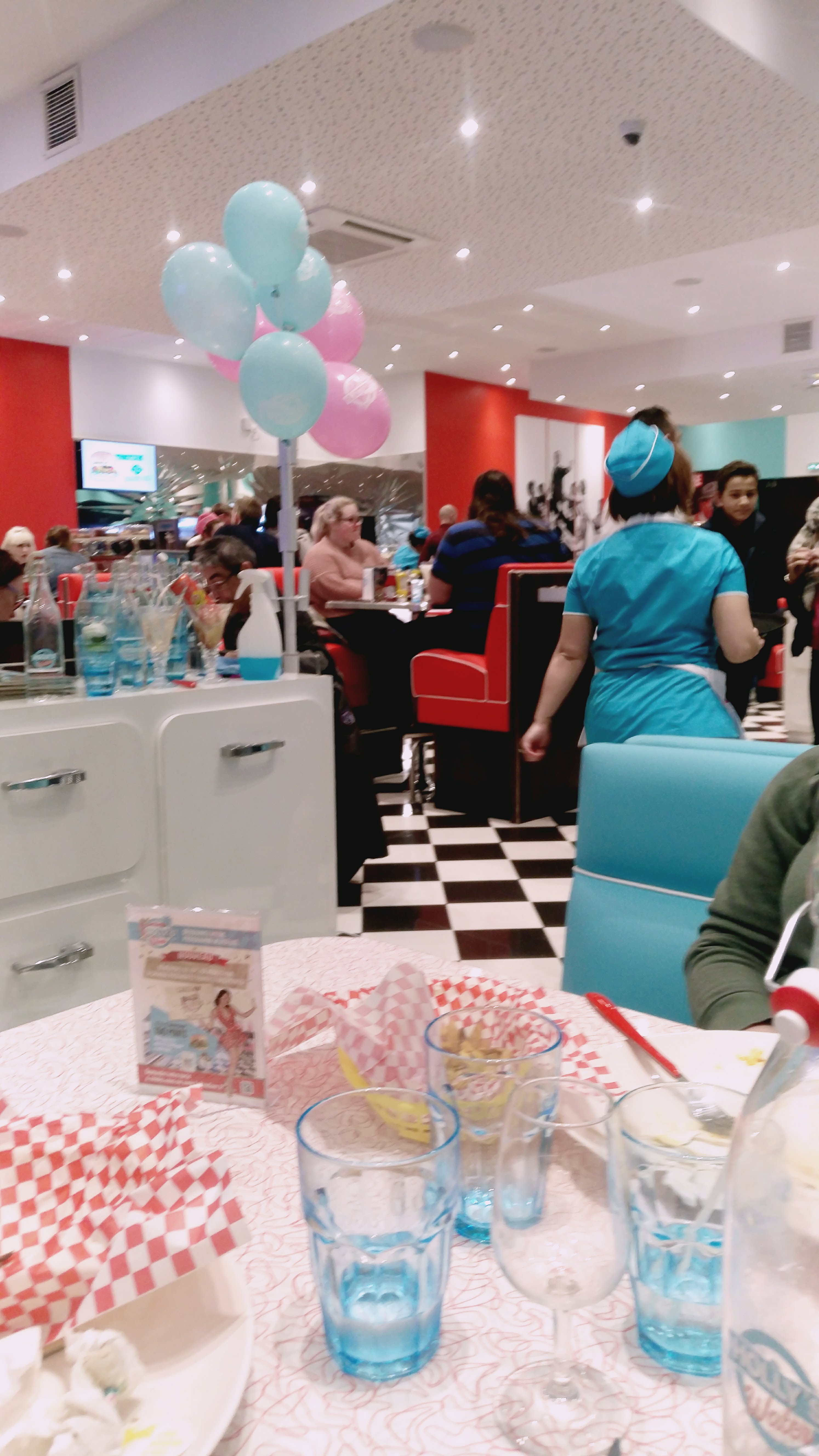 Très bonne expérience. Repas bon et copieux. L'ambiance années 50/60 américaine me plait énormément ! Il ne manque que les patins à roulettes aux serveuses pour être 100% dans le thème. Les serveurs en tenue militaire donnent aussi beaucoup pour l'ambiance même si un peu plus de sourire n'aurais pas été de trop. Sur certaines tables il y à des tablettes pour occuper les enfants durant les moment d'attente. Nous sommes arrivés à 18h45 et nous n'avons presque pas attendus. Les repas est bon, la carte très fournie. Concernant le prix, les plats sont corrects mais les a côté ( cocktail, dessert,...) sont cher (même si très copieux également). Le plus qui m'a fait mettre 5***** et pas 4, c'est les coupes de champagne offerte pour l'anniversaire de ma maman ainsi que la remise sur les repas enfants parce que c'est les vacances. Pour résumer, allez y, ca vaut le coup/coût 😁.