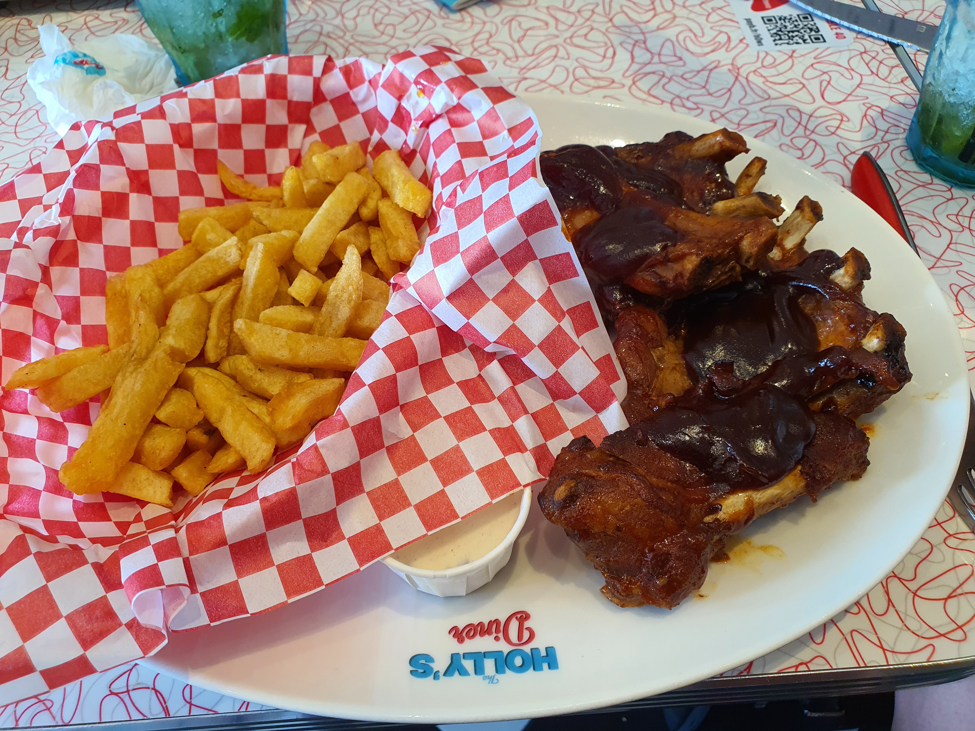 Plusieurs anciennes expérience très réussies, avec un ensemble de plats bons et bien garnis dans une ambiance très Amérique des années 50 et 60. Cependant notre dernier repas chez Holly's diner en mai de l'année dernière à été raté. A noter, après la fermeture dû au confinement, le restaurant a eu beaucoup de mal à se remettre en route avec plusieurs tentatives pour y aller infractueuses : déclaré ouvert sur internet mais finalement fermé, ouverture le soir épisodique, plus d'ouverture l'après midi ...etc finalement après moultes essais, nous y allons enfin pour retrouver nos hamburgers favoris. Malheureusement on nous sert des hamburgers qui sentent mauvais et des frites archi réchauffées. Résultats tous malades au soir !! Quelques jours plus tard fermeture définitive du restaurant. Dommage d'avoir saborder un si bel outil.. on espère son retour dans de meilleures conditions