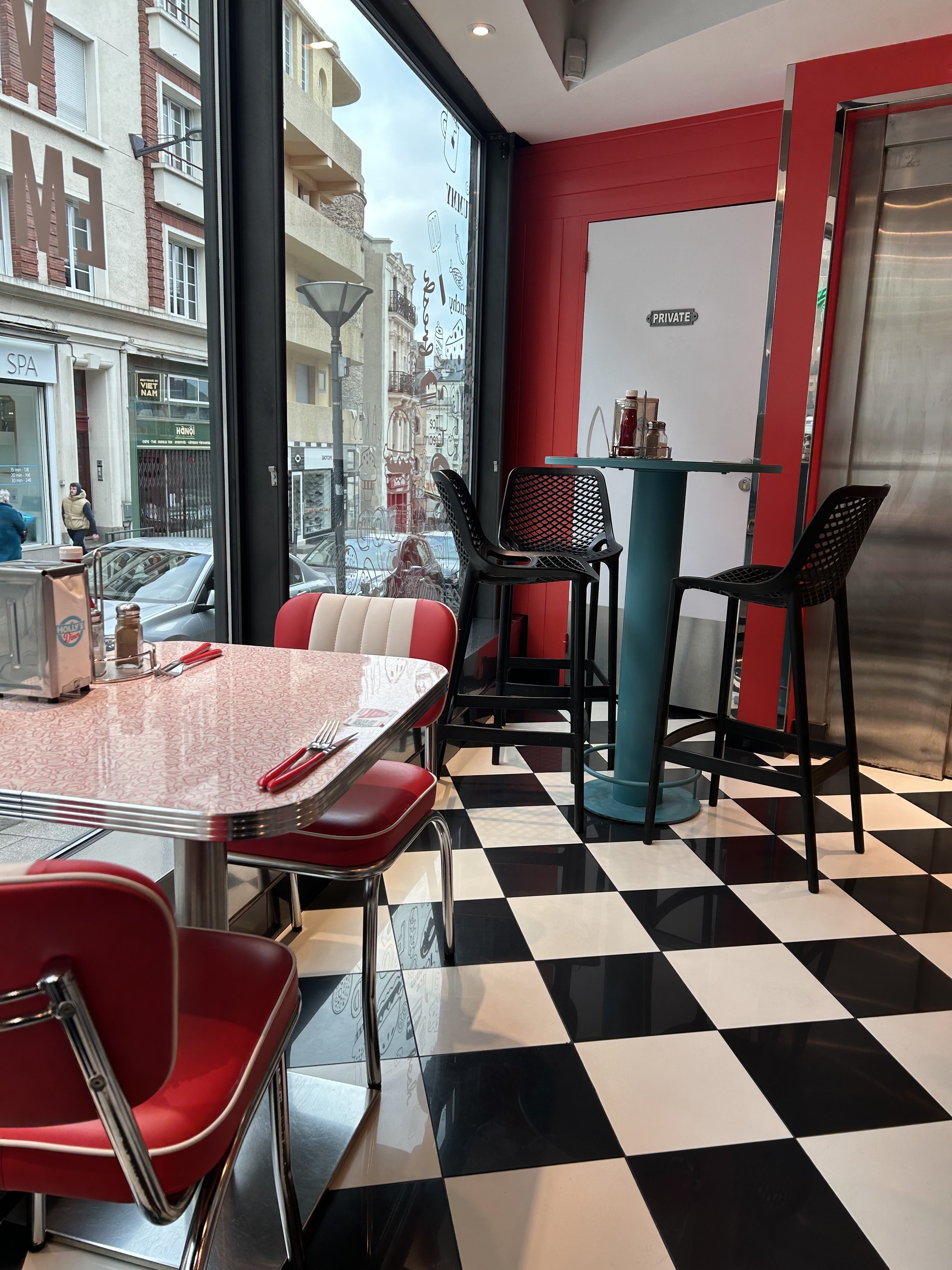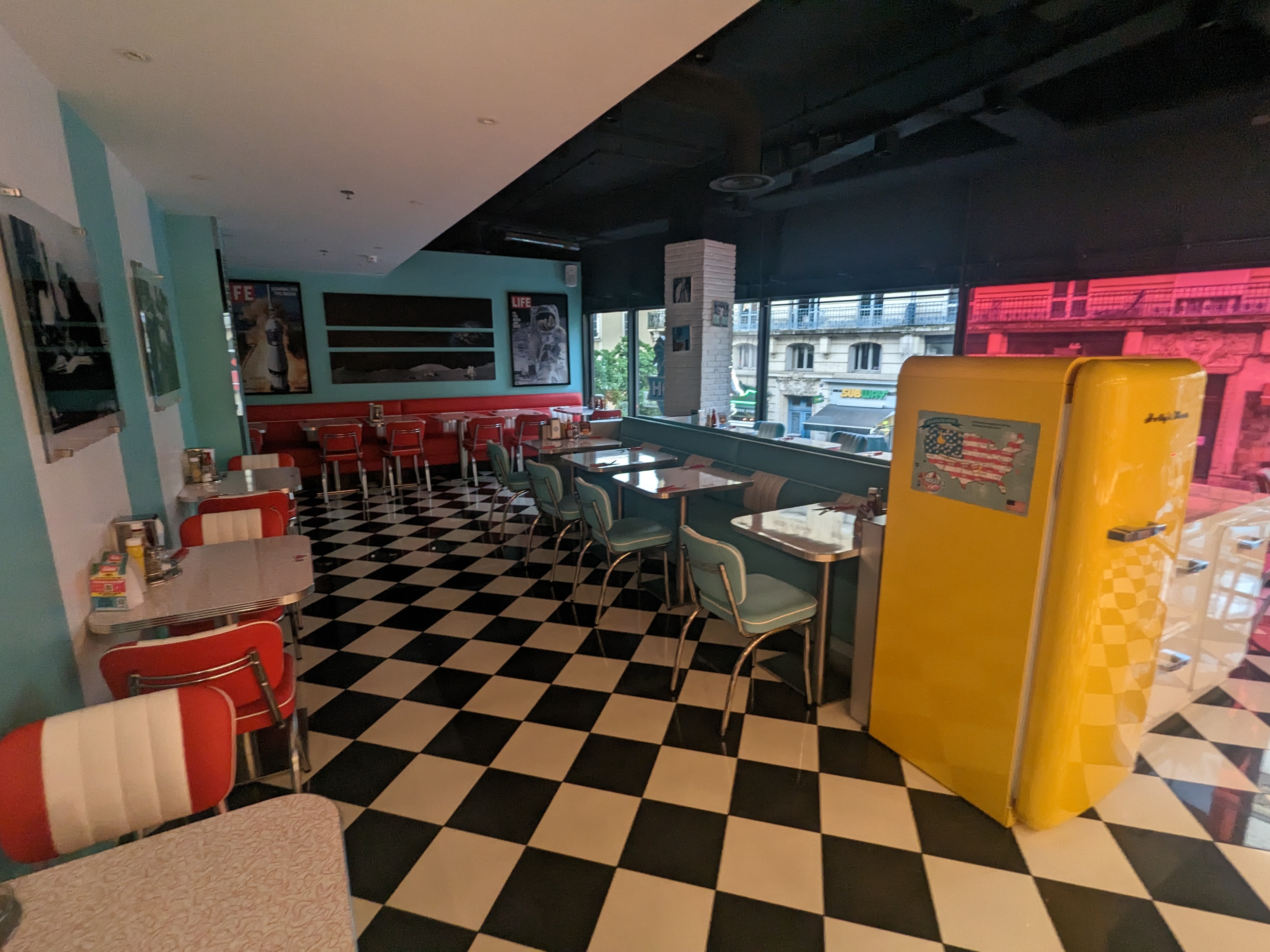 J'adore l'ambiance diner américain (c'est dans le nom me direz-vous), avec ces couleurs qui me font terriblement penser au film Asteroid city. C'est très réussi niveau ambiance, niveau cuisine aussi, mais pour cela reste de la grande distribution assez chère, c'est pourquoi ça ne mérite pas les 5 étoiles.
