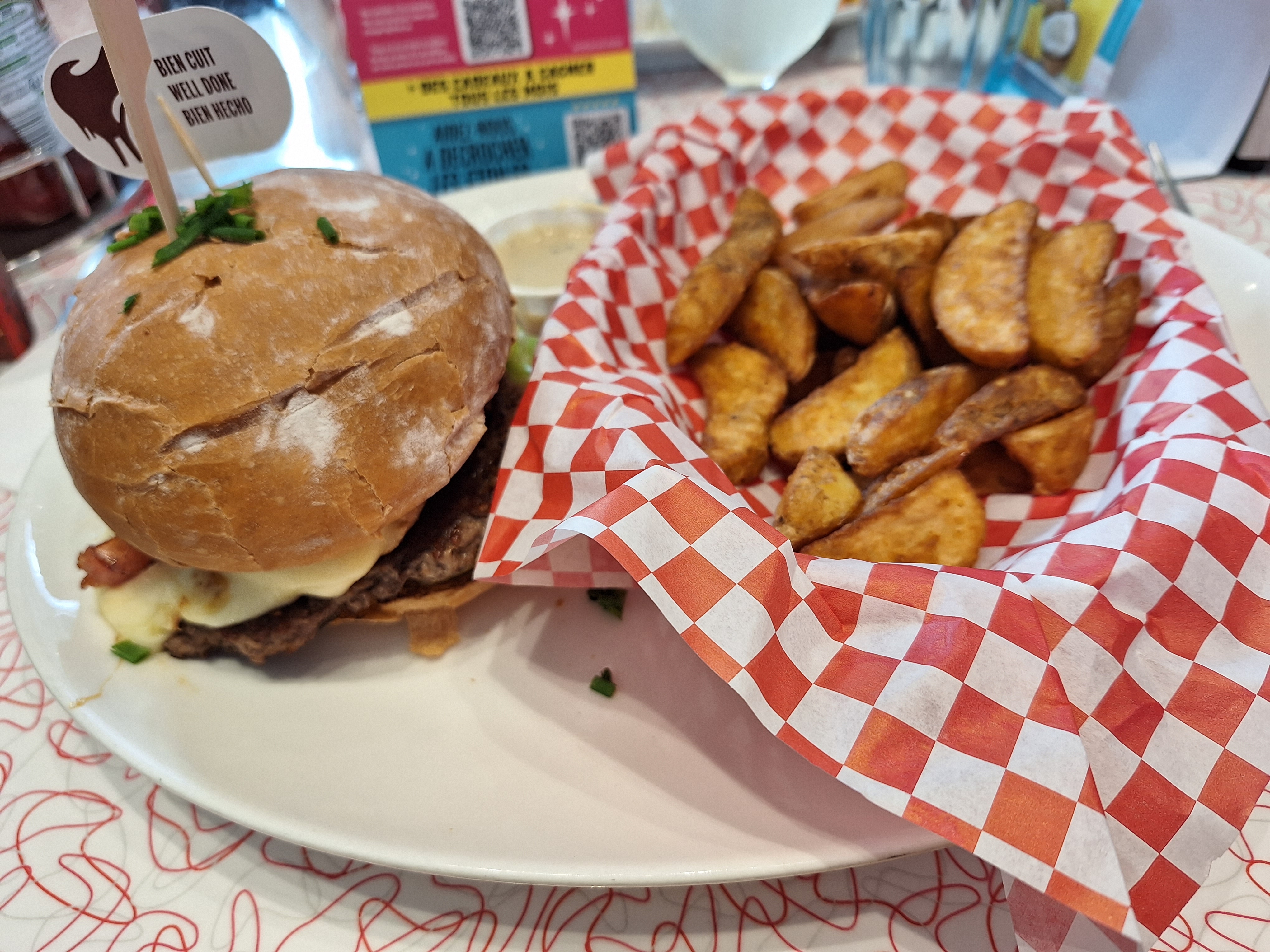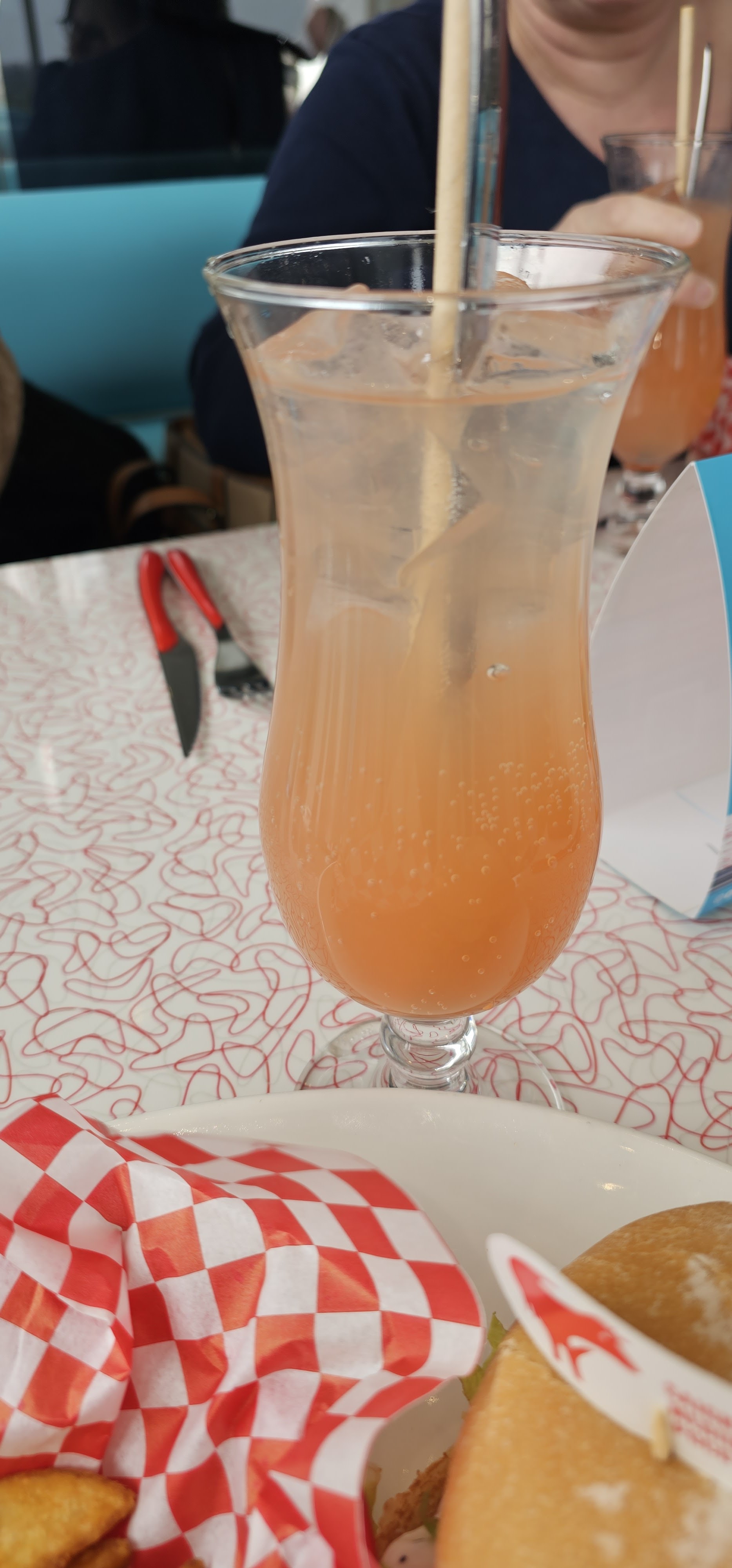 Une déco magnifique, de très bons cocktails, des burgers bien fat à l'américaine avec frites/potatoes et sauce à volonté. Le service, assurée par Soso, au top 👌 Et la bande son 🤩 on est vraiment dans les années 60