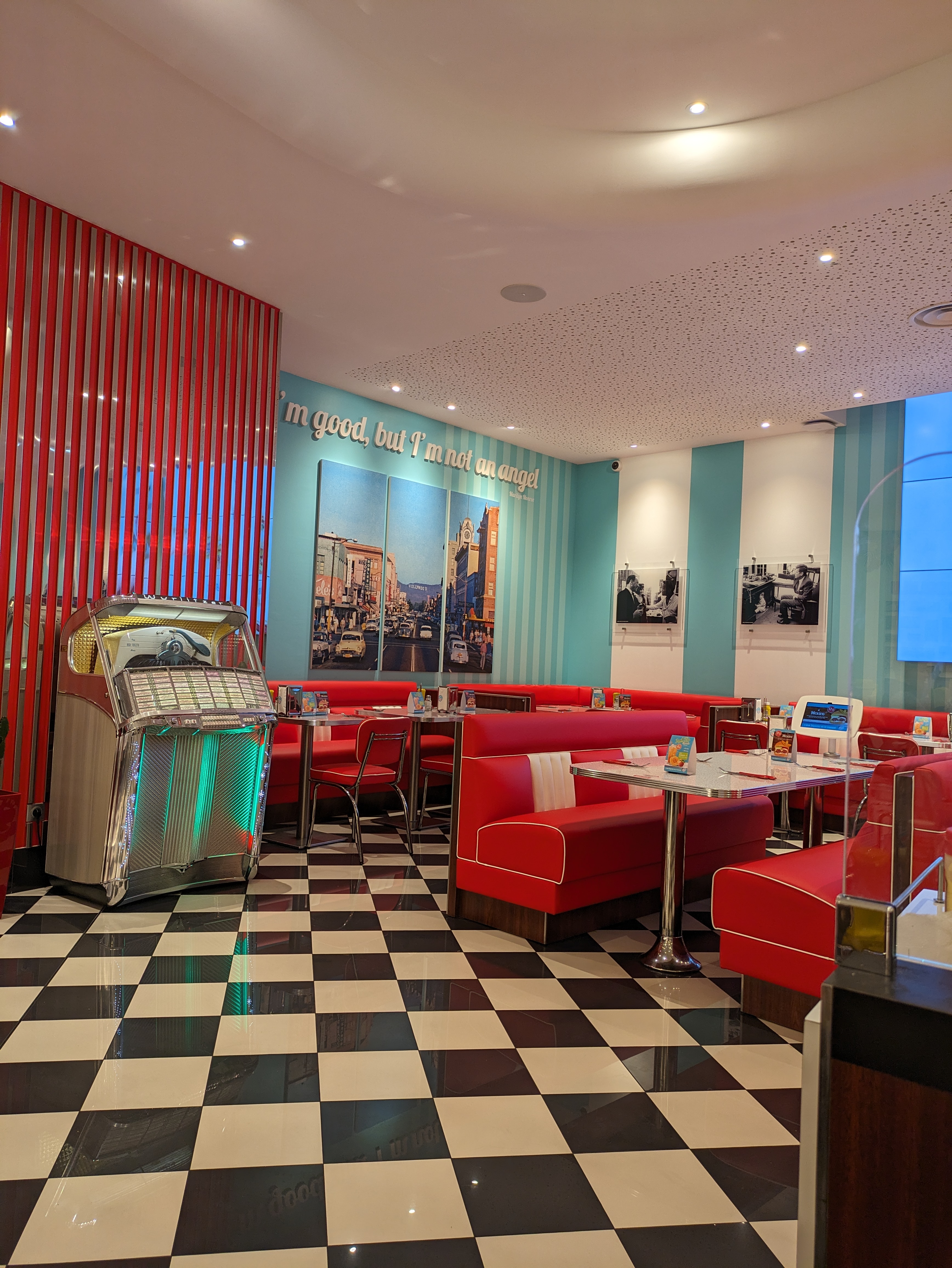 Super restaurant. La déco est très immersive, on se croirait dans un Diner comme dans les films des années 60! C’est très propre, tout est bien nettoyé, ça brille! Les toilettes y compris! On y mange bien, le choix est très large et surtout bon et bien servie. Le personnel très smart et pro! Clin d’œil à Medhi pour son management! ;) On reviendra, c’est sur !