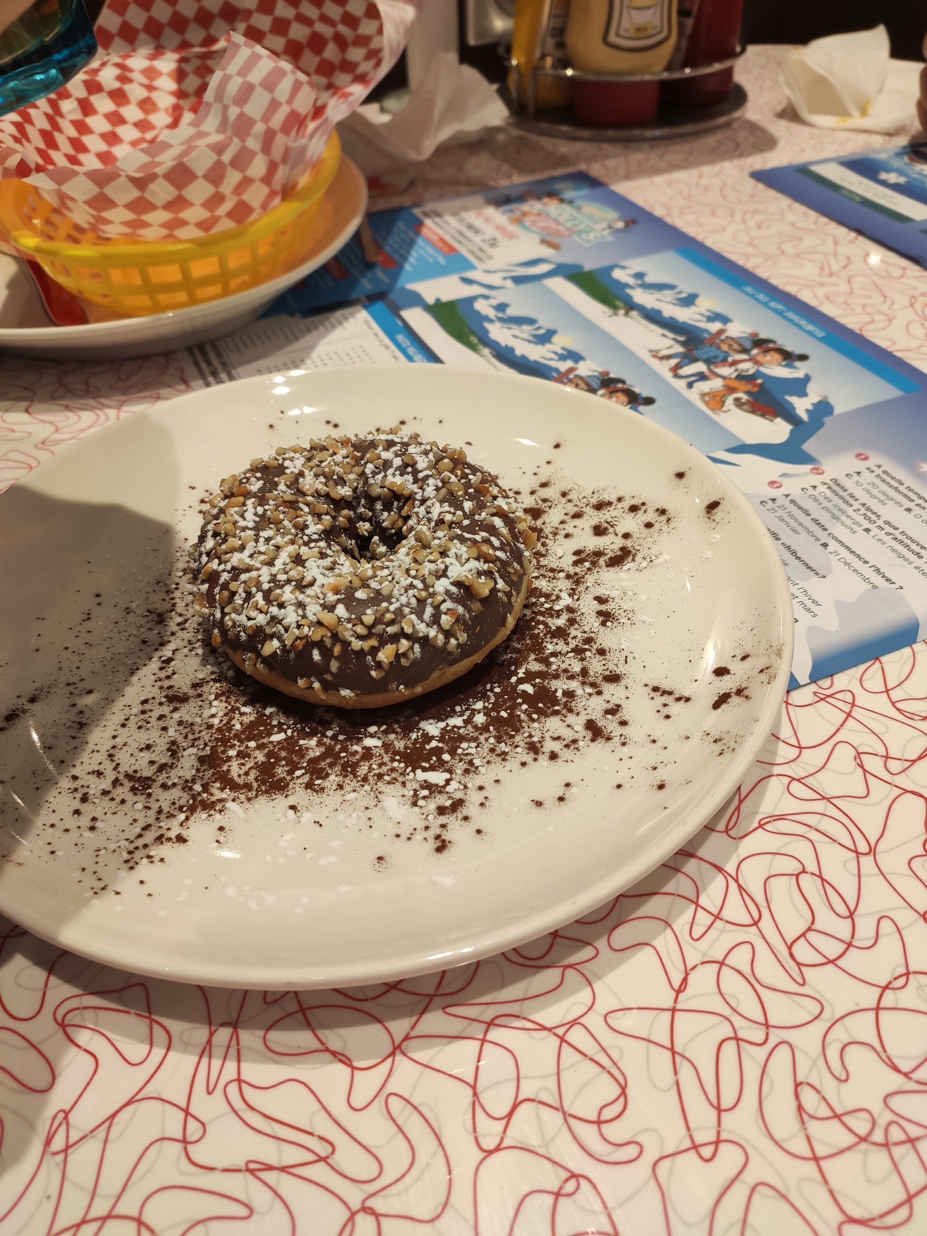 Venus en famille. Très bon accueil. Le personnel de service est disponible, courtois et très professionnel. Déception pour un plat : hot dog servit froid. Nous avons demandé un remplacement. La serveuse est revenue rapidement avec un nouveau hot dog de nouveau froid !!! Enfin le 3eme est revenu chaud ce coup ci. Mais notre enfant était seule à finir son repas. Les desserts sont bons mais les donuts fourrés chocolat sont mal conçus. Ils sont fourrés par dessous donc en mangeant vous en avez plein les mains. L’amélioration serait de poser le glaçage côté trous !!!