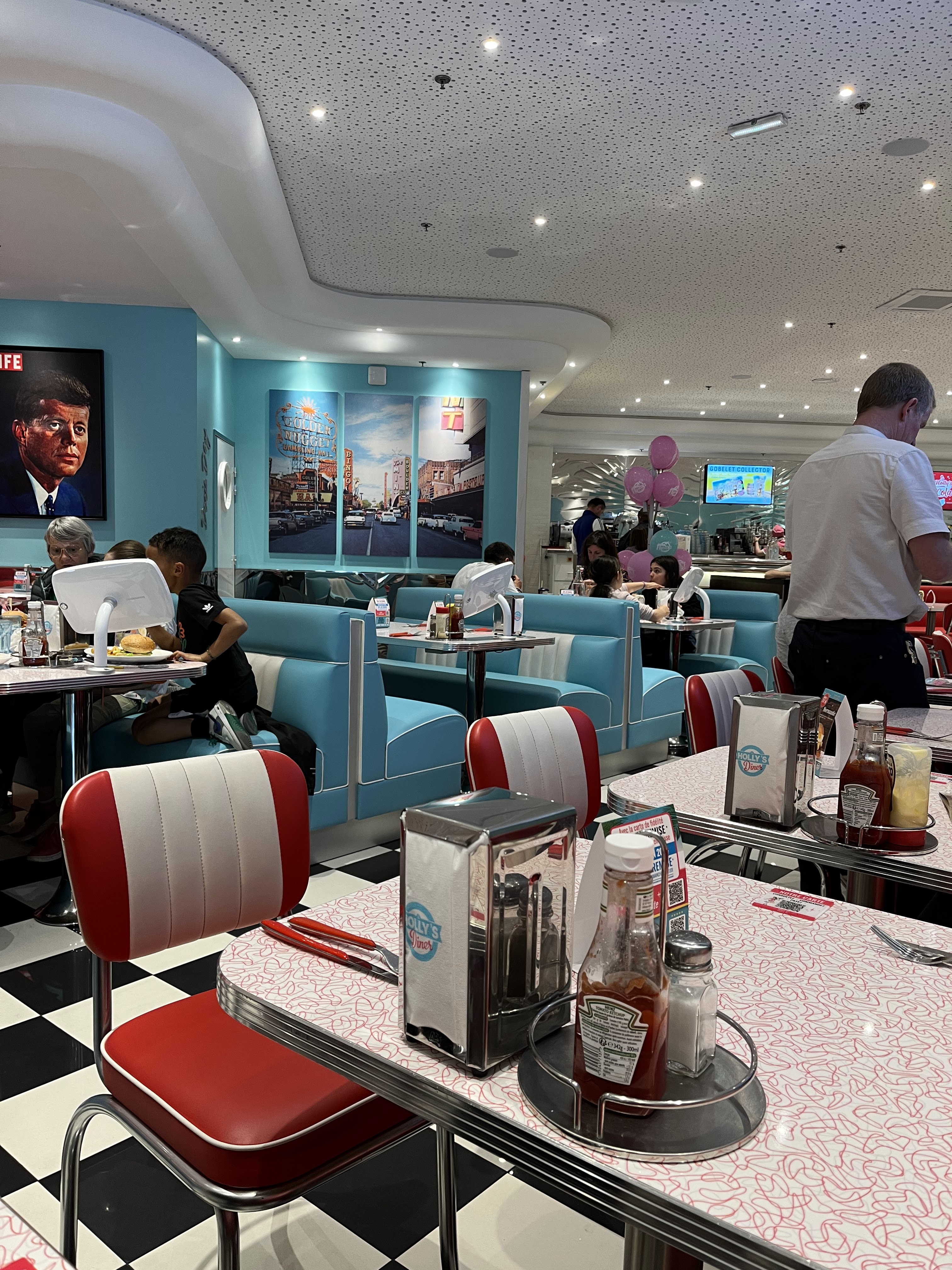 Ambiance rétro dans les clichés américains c est bien un restaurant et non un fast food.Bémol les prix je trouve ça assez cher surtout pour les boissons (desperados a + de 5€).Pas convaincu par le concept Je ne pense pas y retourner
