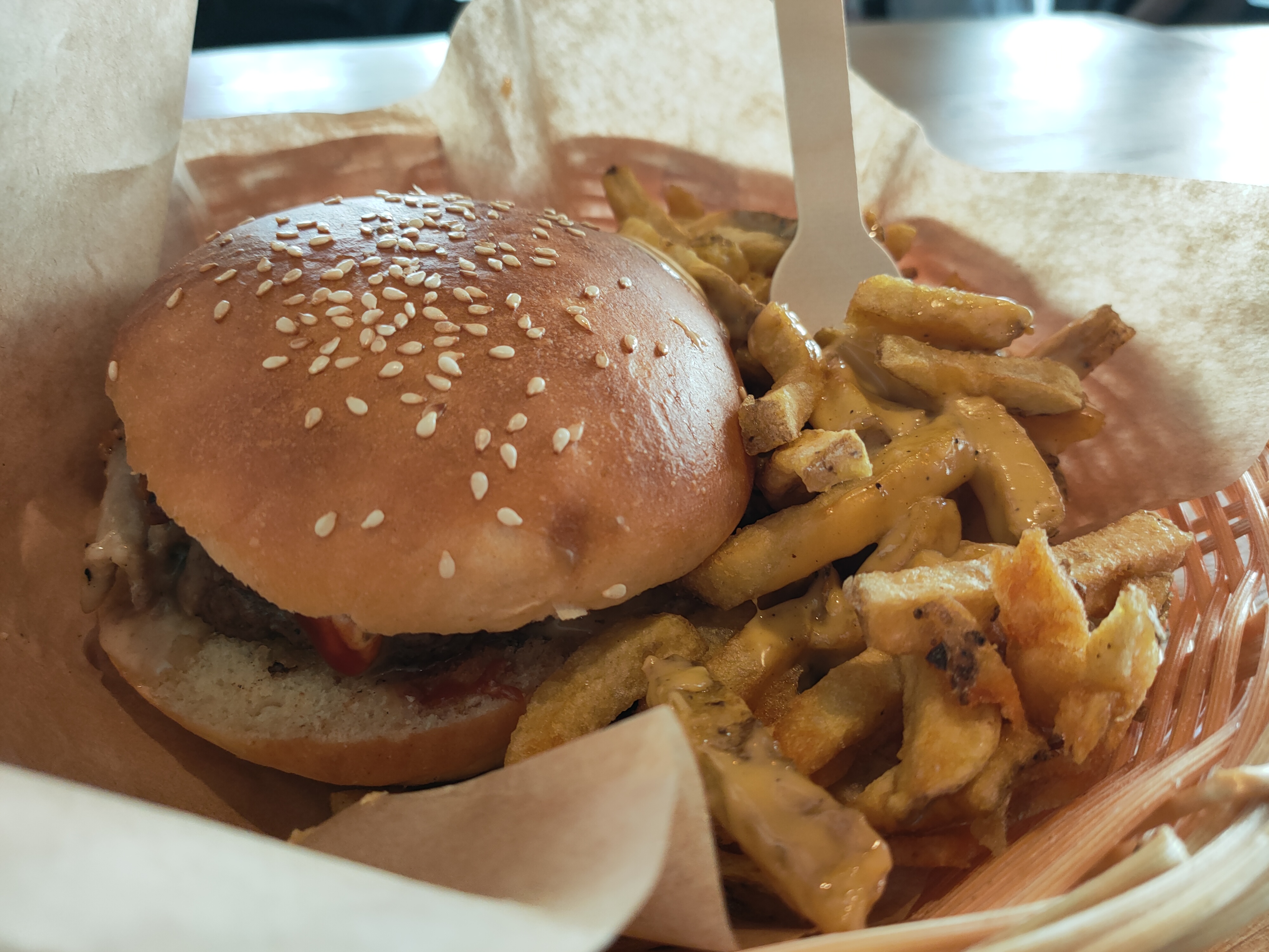 Seul restaurant encore ouvert à 15h dans les environs, je me suis arrêté là sans connaître. Bonne découverte, très bons burgers et frites! C'est copieux et ça a du goût ! Existe pas mal de choix en burger bœuf, poulet mais aussi veggie donc il y en a pour tout le monde et c'est très bien !