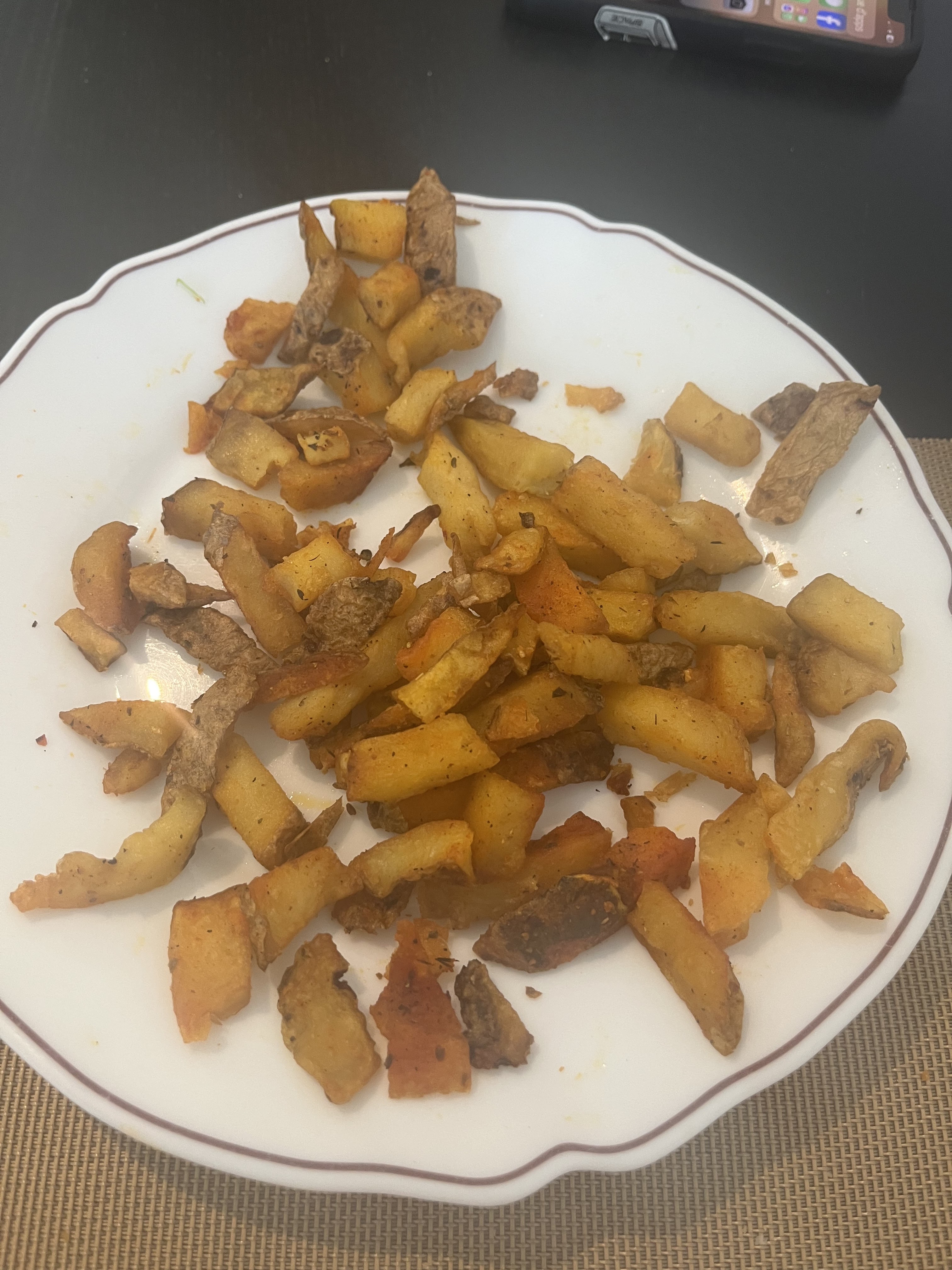 Légèrement cramé avec un peu plus du sel jai mangé en décale avec ma collègue car il se sont trompés de la commande table pas stable, signalé mais la dame n’est jamais revenu régler le souci