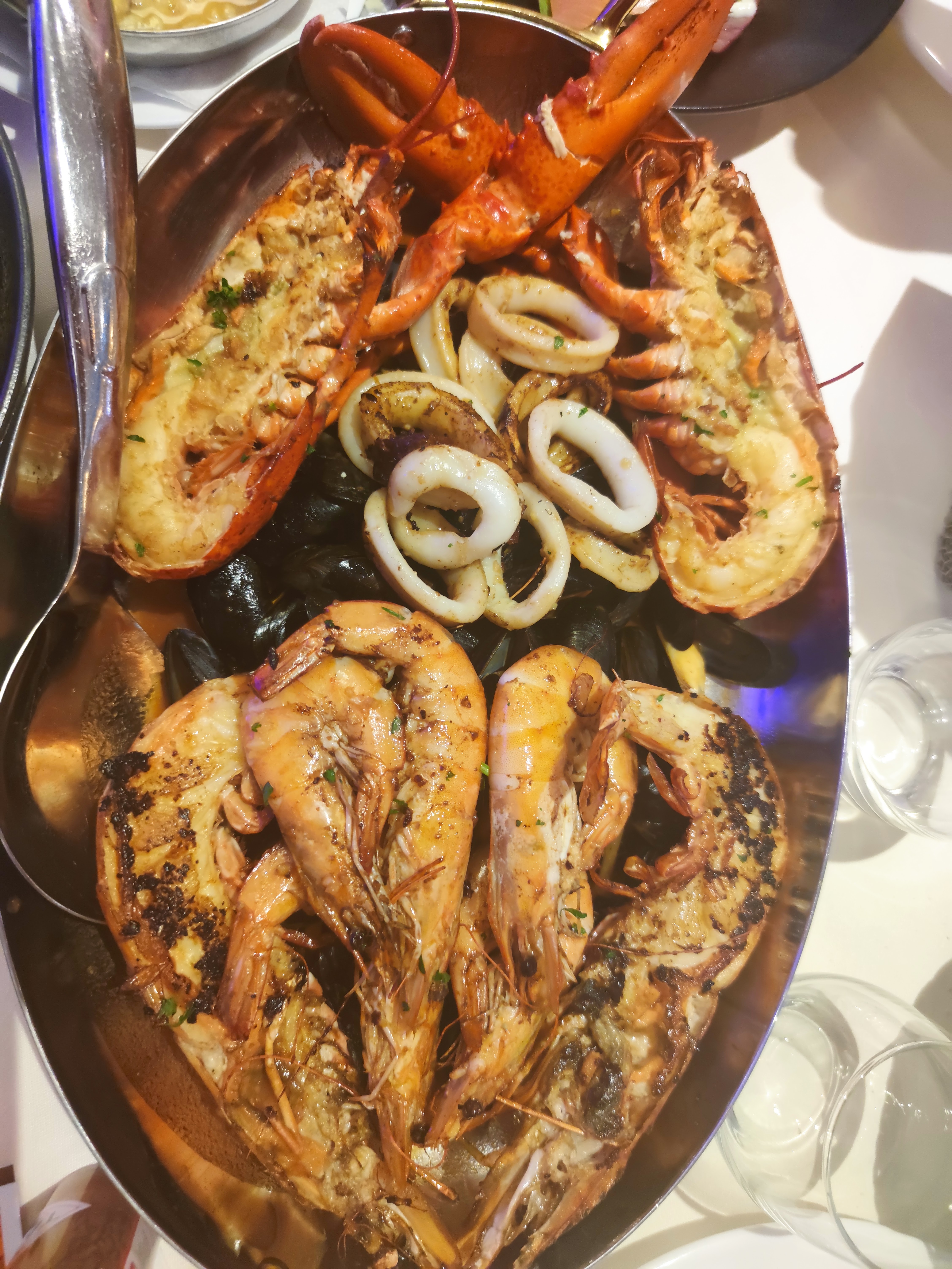 Les fruits de mer étaient très bons et goûtés comme prévu. Cependant, c'est un peu cher.