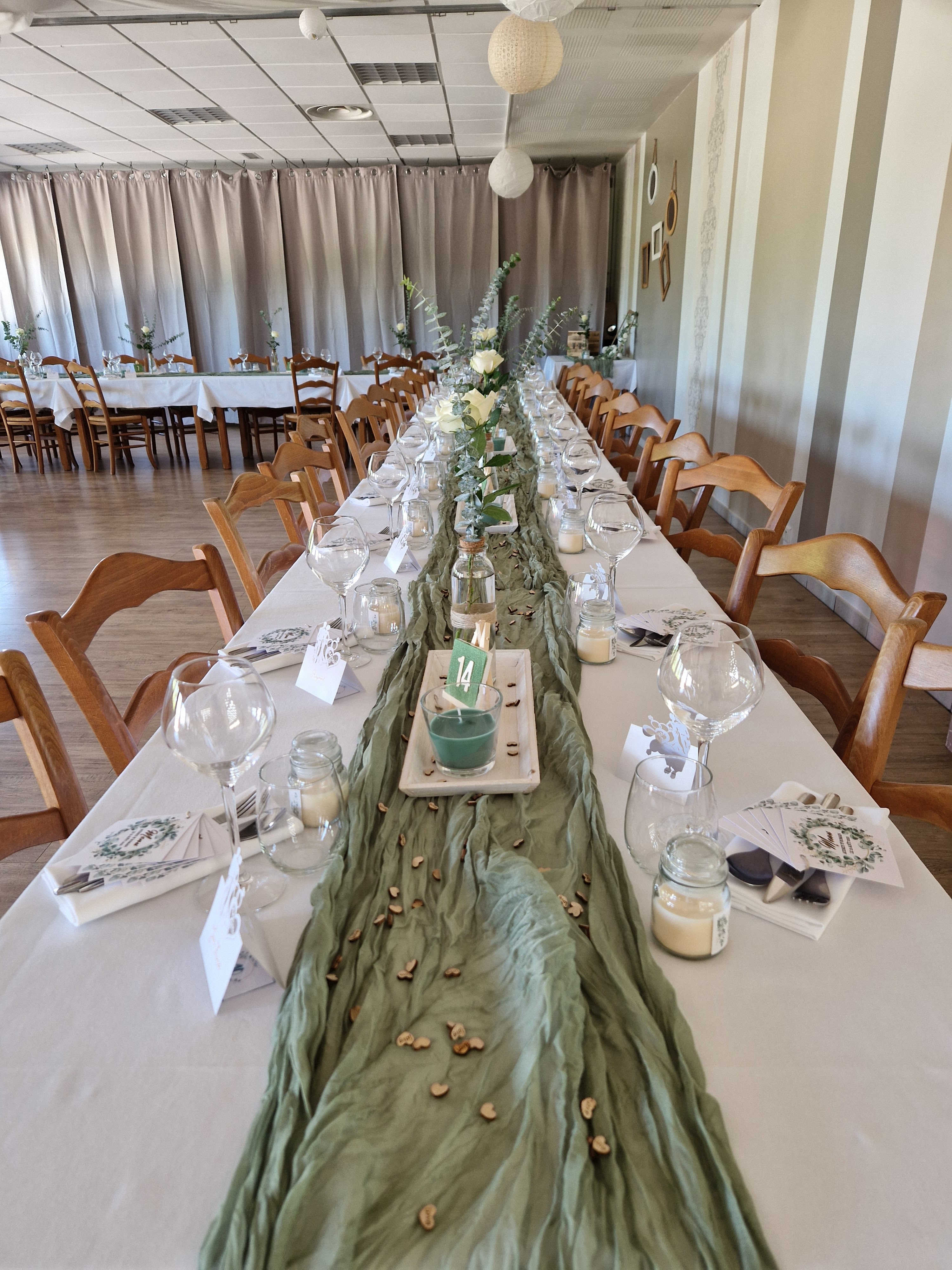 Nous avons fait notre mariage le 08 juillet et vraiment rien à redire. Le service pendant les préparatifs de la salle, le lendemain le vin d'honneur excellent et le repas idem. Tout le monde était très content et ravi. Merci à tous pour l'accueil, le service et le repas.