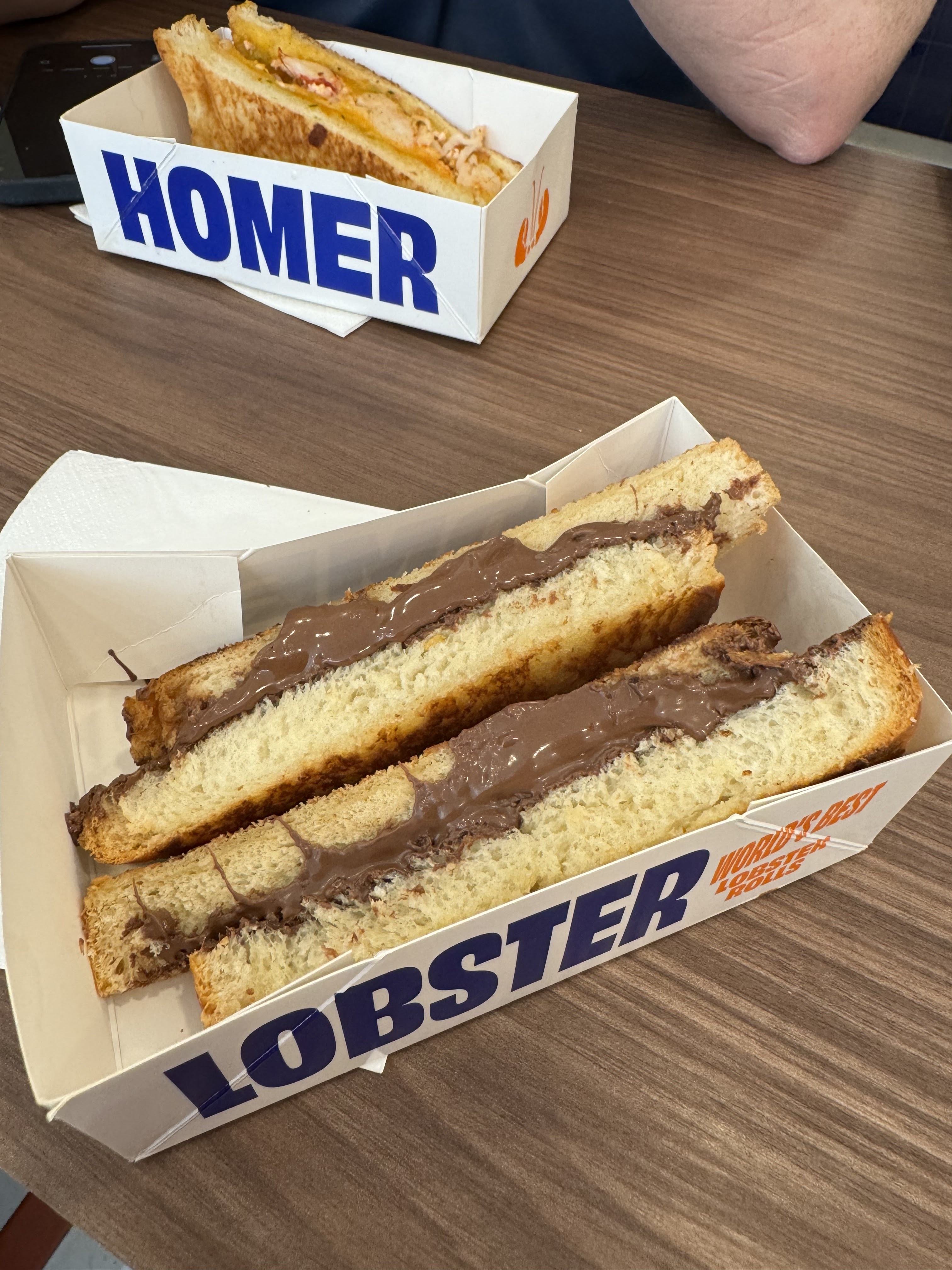 Un dimanche après midi… Une légère faim se fait sentir… Et là, que vois je ? Un restaurant Homer dans lequel j’ai pris un « grilled cheese Crab » Les mots me manquent pour décrire la qualité et le goût de ce sandwich. Merci à l’équipe pour son accueil et son efficacité. Mention spéciale à Emran.