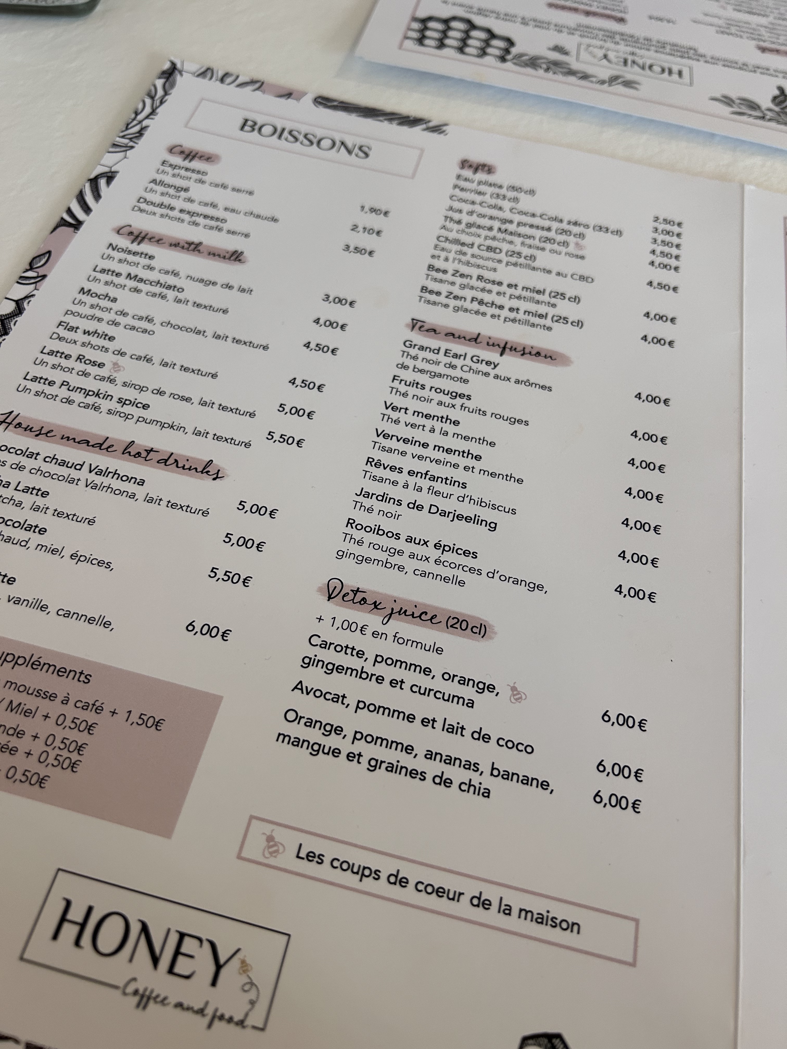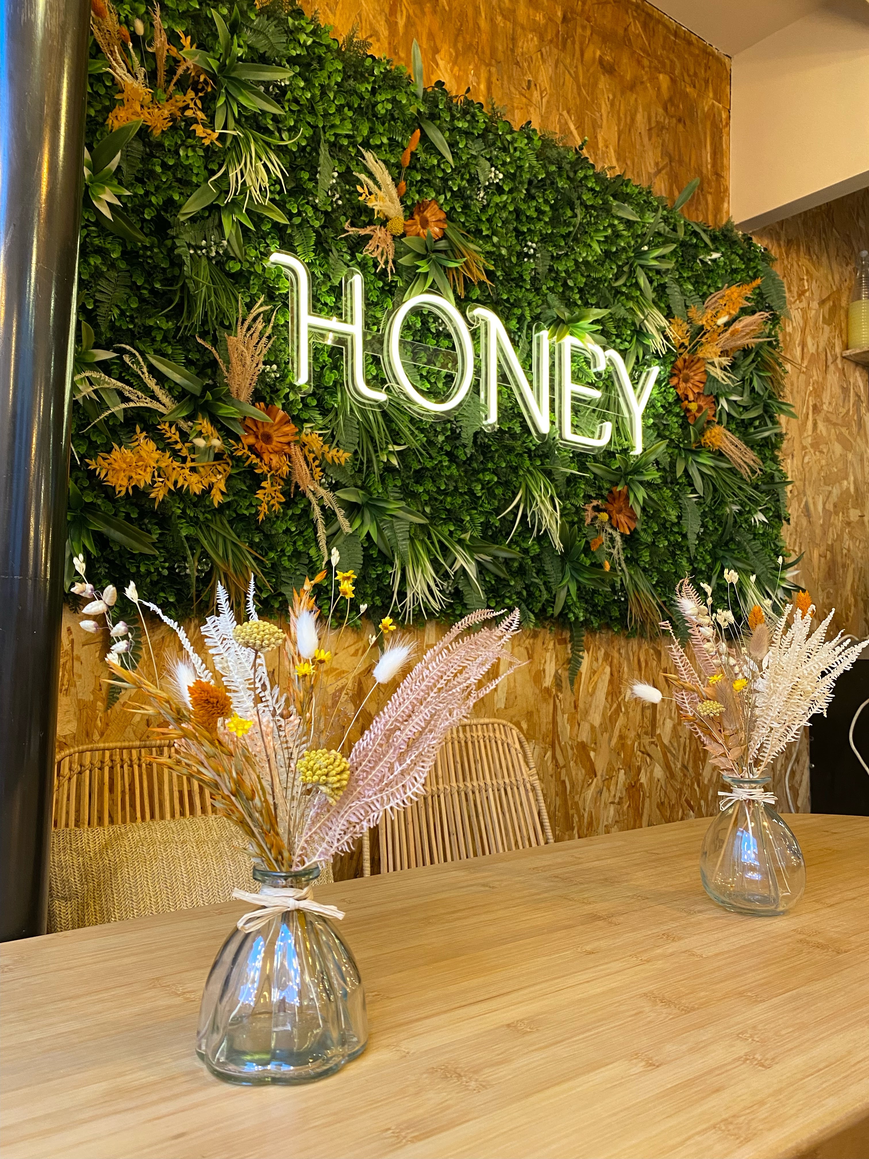 Nous sommes très étonnées de lire certains avis… Cela fait 2 fois que nous déjeunons chez Honey, très surprises par le concept très colorés qui change de biens d’autres restaurants. Les plats sont vraiment beaux & bons ! Le personnel, malgré les critiques données dans d’autres avis, est agréable et souriant : il suffit parfois de rendre la pareille tout simplement… Nous reviendrons sans hésitation et avec grand plaisir afin de continuer de découvrir le concept.