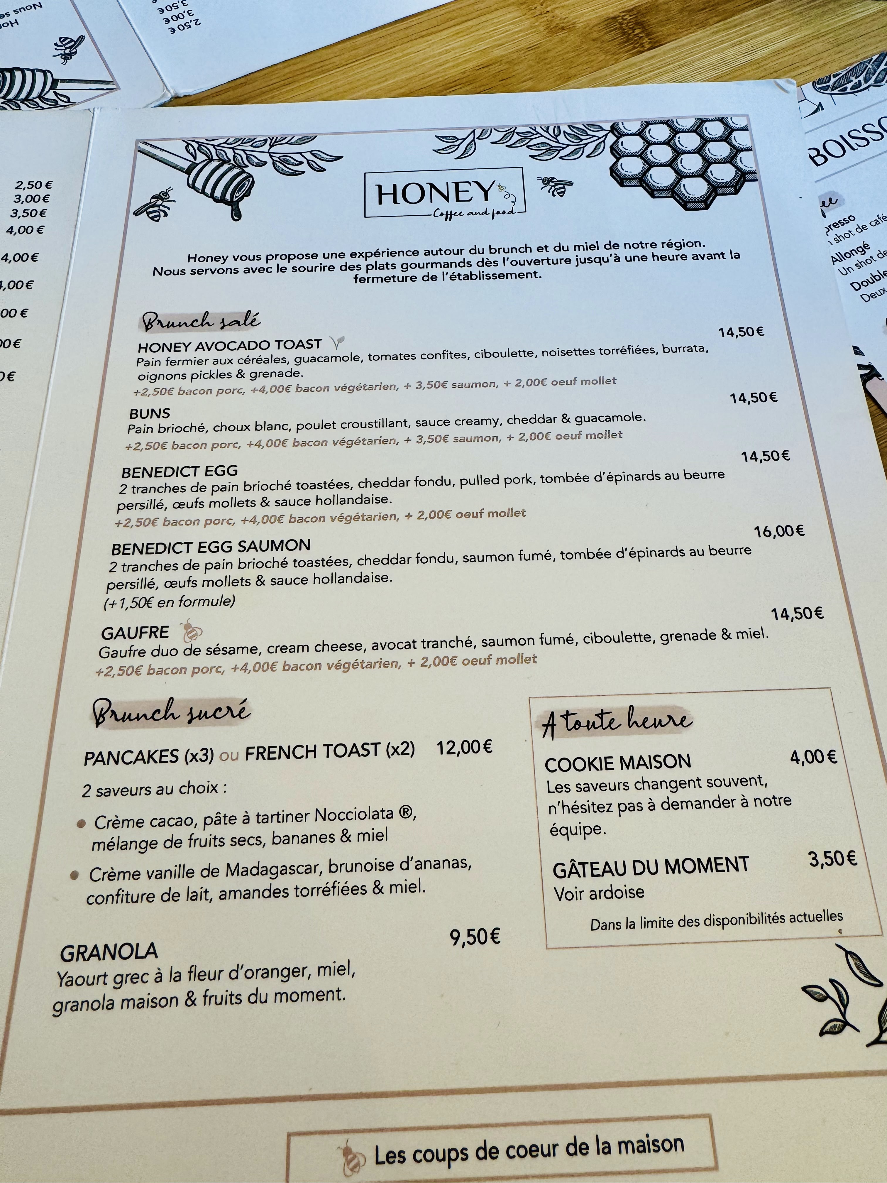 C'est le lieu qu'il fallait sur nancy ! Le personnel est chaleureux, l'ambiance est vraiment agréable. Les plats sont généreux et vraiment très bon que ce soit du côté salé ou sucré ! C'est avec plaisir que nous allons bruncher chez honey 😊