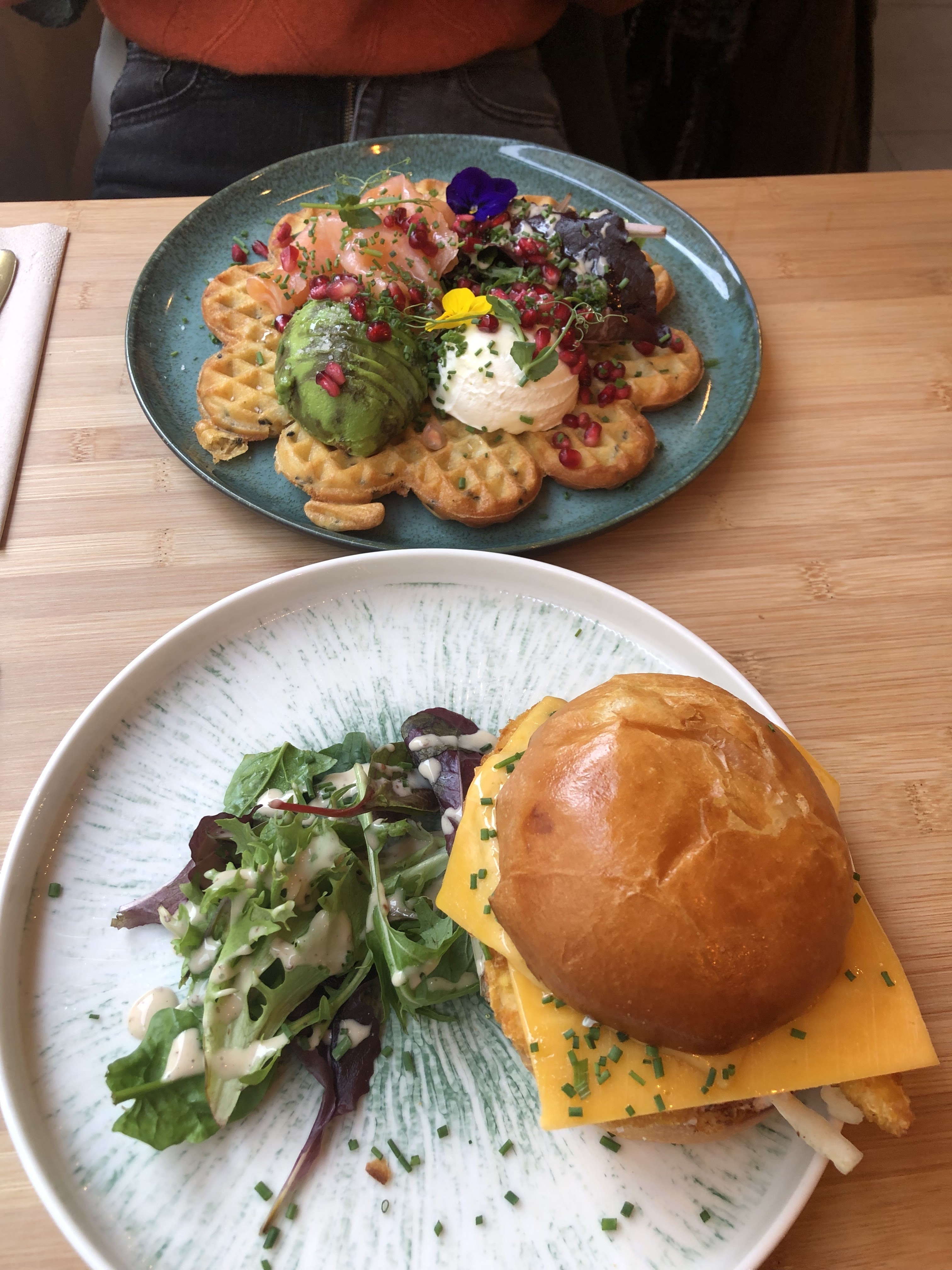 Ce restaurant est une pépite. Je l'ai découvert samedi dernier et je vais y aller souvent désormais. J'y suis allée vers 16h, il y avais du monde mais ça va j'ai attendu que 15min pourtant j'étais seule. J'ai pris la formule Reine des abeilles avec : - Une Gauffre duo de sésame au saumon fumé, cream cheese, avocat, ciboulette, grenade & miel. Une tuerie 🥰 - 2 French Toast (Brioche façon pain perdu) à la crème cacao, pâte à tartiner nocciolata, mélange de fruits sec, banane & miel Et un chocolat chaud aux fèves de chocolat valrhona, lait texturé et sirop de vanille. Tout était excellent et bien généreux, je suis d'ailleurs repartie avec la moitié de mes French Toast tellement les plats étaient bien garnies.