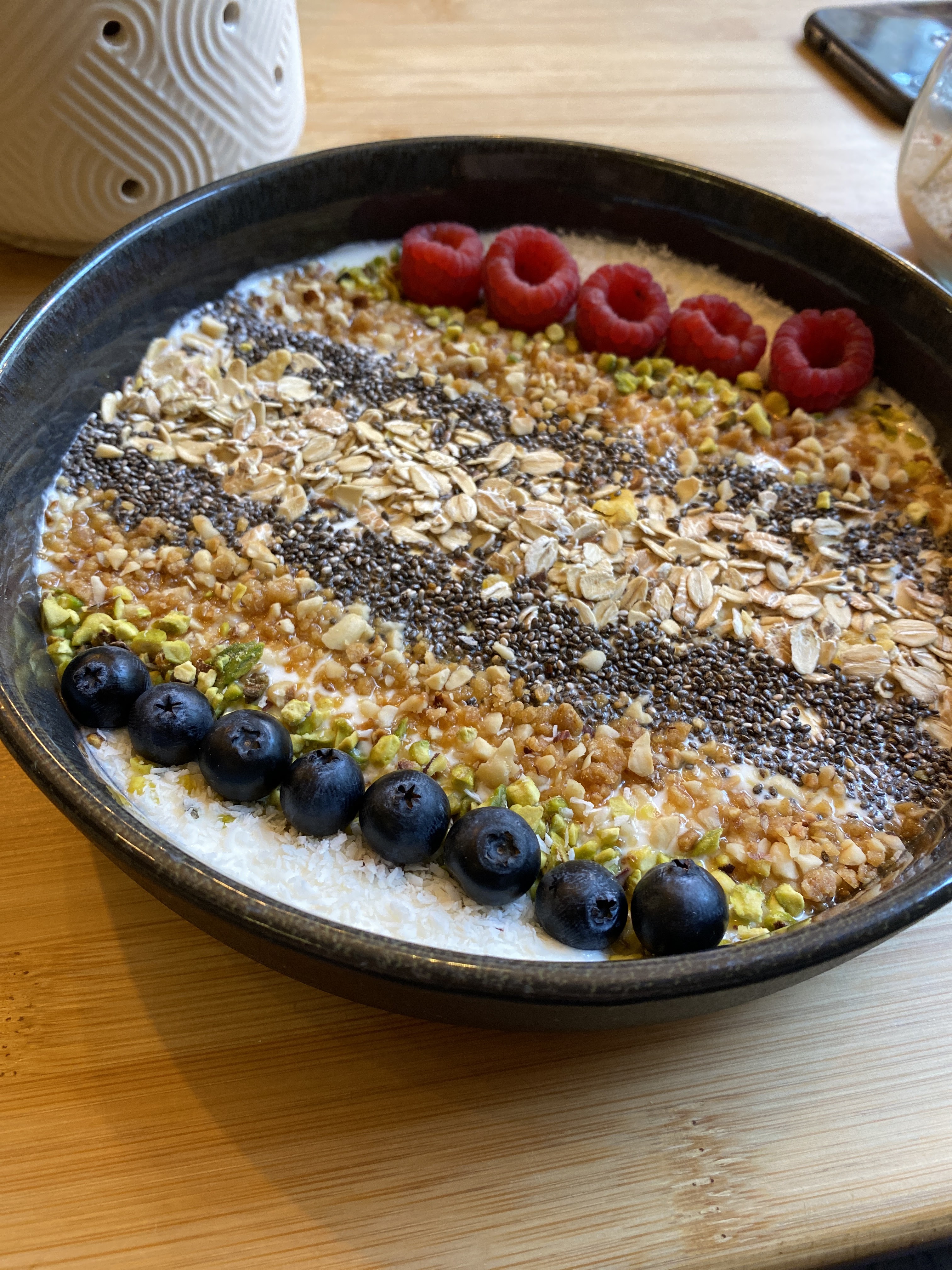 Endroit très agréable, décoration soignée (l’odeur de la bougie INCROYABLE). La nourriture est très bonne et copieuse. Assiettes qui donnent envie. Une légère déception pour l’unique choix de lait végétal (lait d’amande, il manquerait pourquoi pas un lait d’avoine, plus neutre et plus doux). Et dommage qu’il n’y ait pas d’option sans gluten. Mise à part ces petits points, tout était très bon. Je recommande