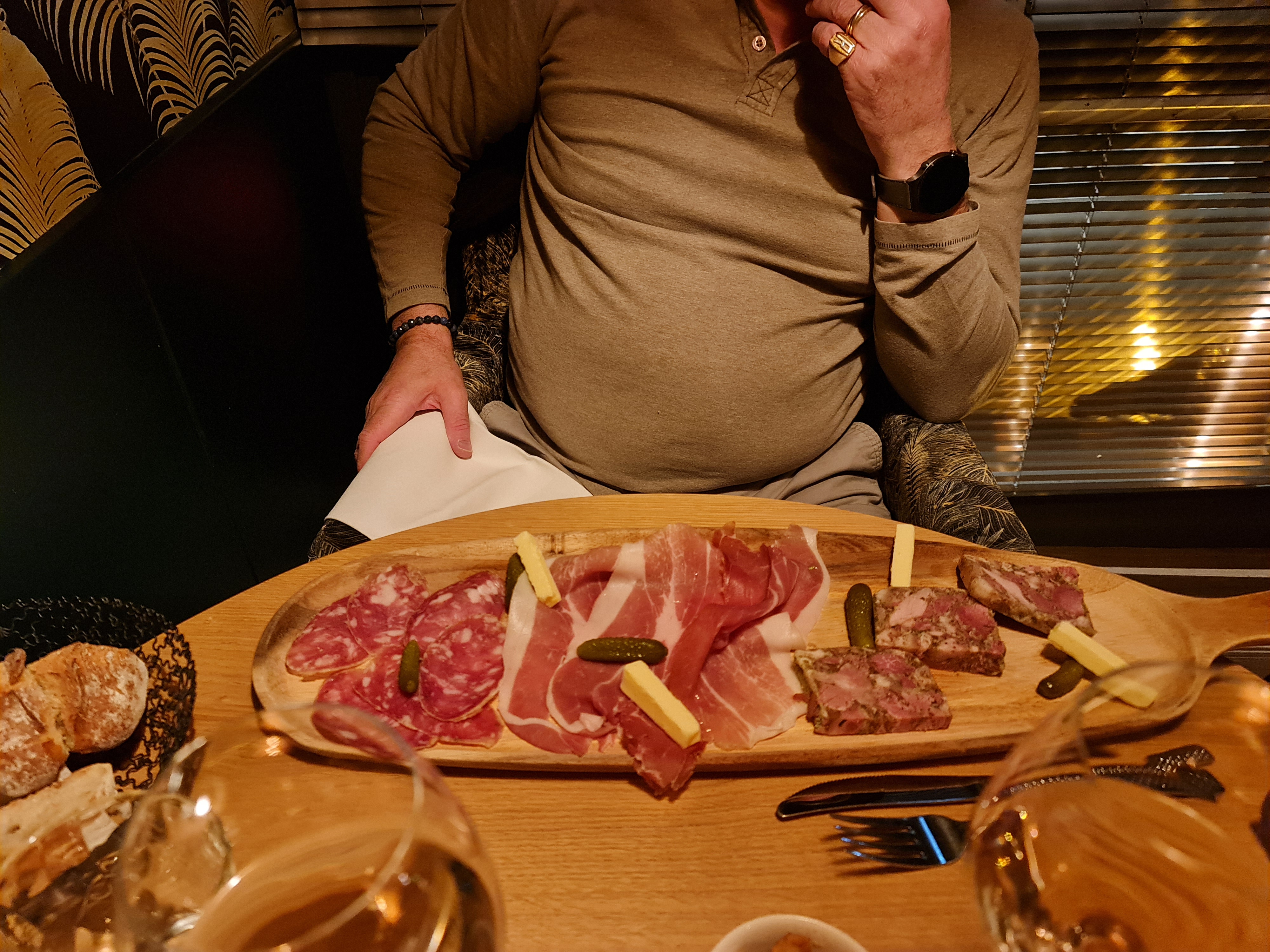 Bon moment passé dans ce restaurant. Le verre ébréché a été remarqué et enlevé de suite par la serveuse. Bonne réaction. Le jambon servis en tapas était à mon goût trop gras.. on a mangé plus de gras que de viande….