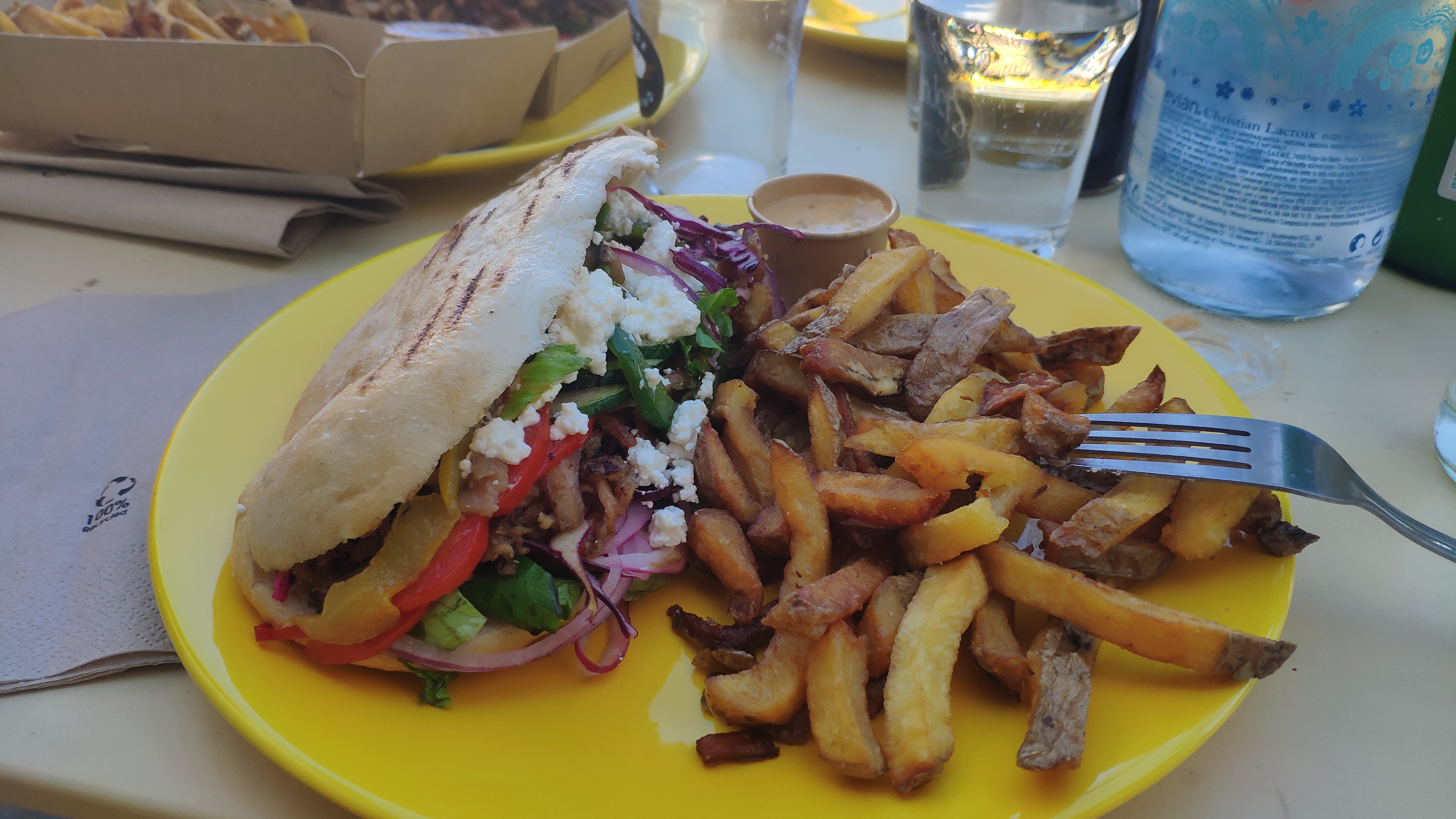 J'ai testé l'option veggie avec des beignets de tomates cerises: vraiment délicieux 😋 Cerise sur le kebab : la playlist et l'accueil étaient au top💜