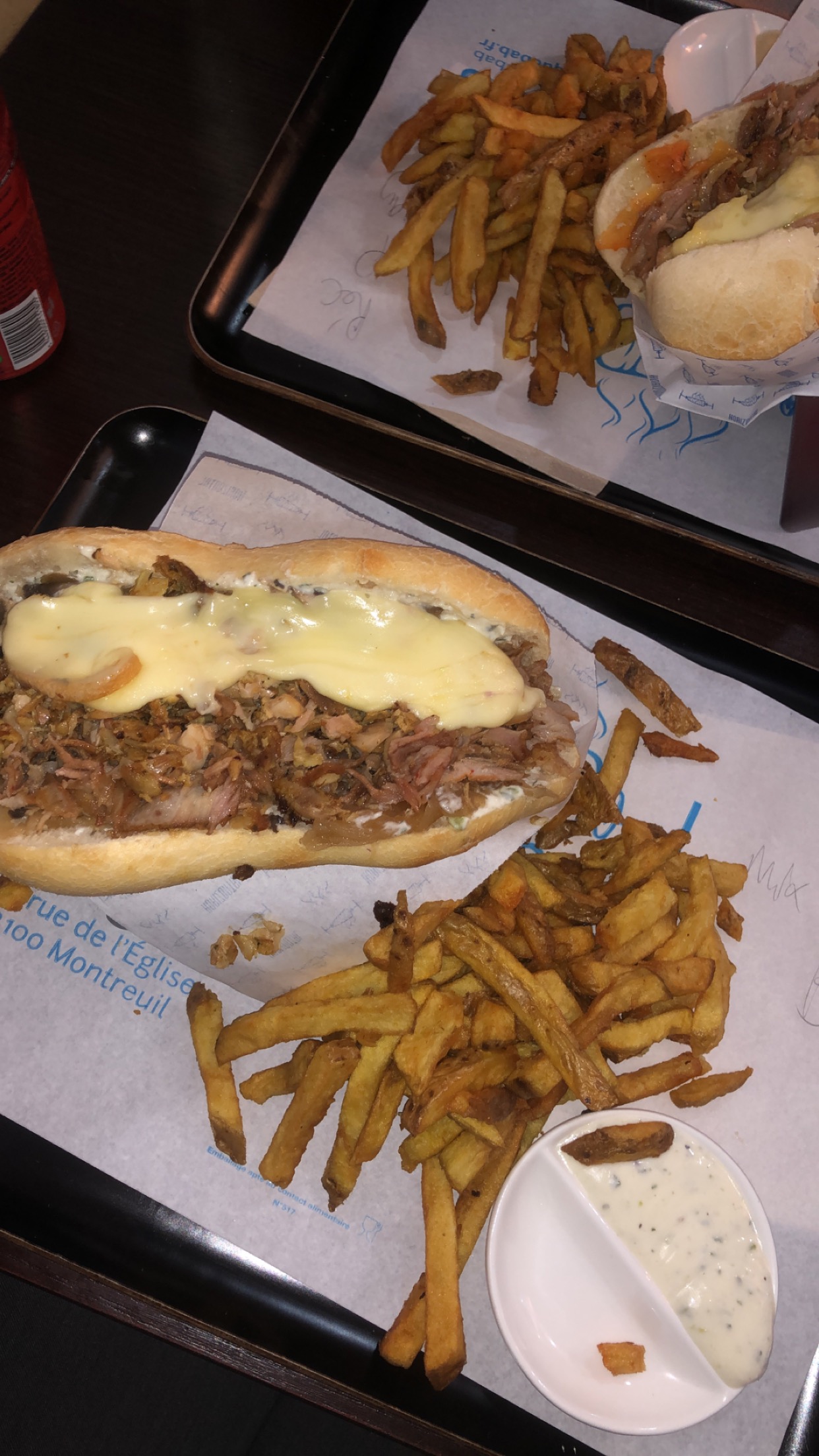 Viande pas cuite, frite horrible collé entre elles et plein d'huile, une toute petite portion de sauce, le sanchwich que j'ai eu n'était pas celui que j'ai commandé je m'en suis rendu compte plus tard car j'avais pris a emporter vraiment pour 12e le menu c'est une ÉNORME déception