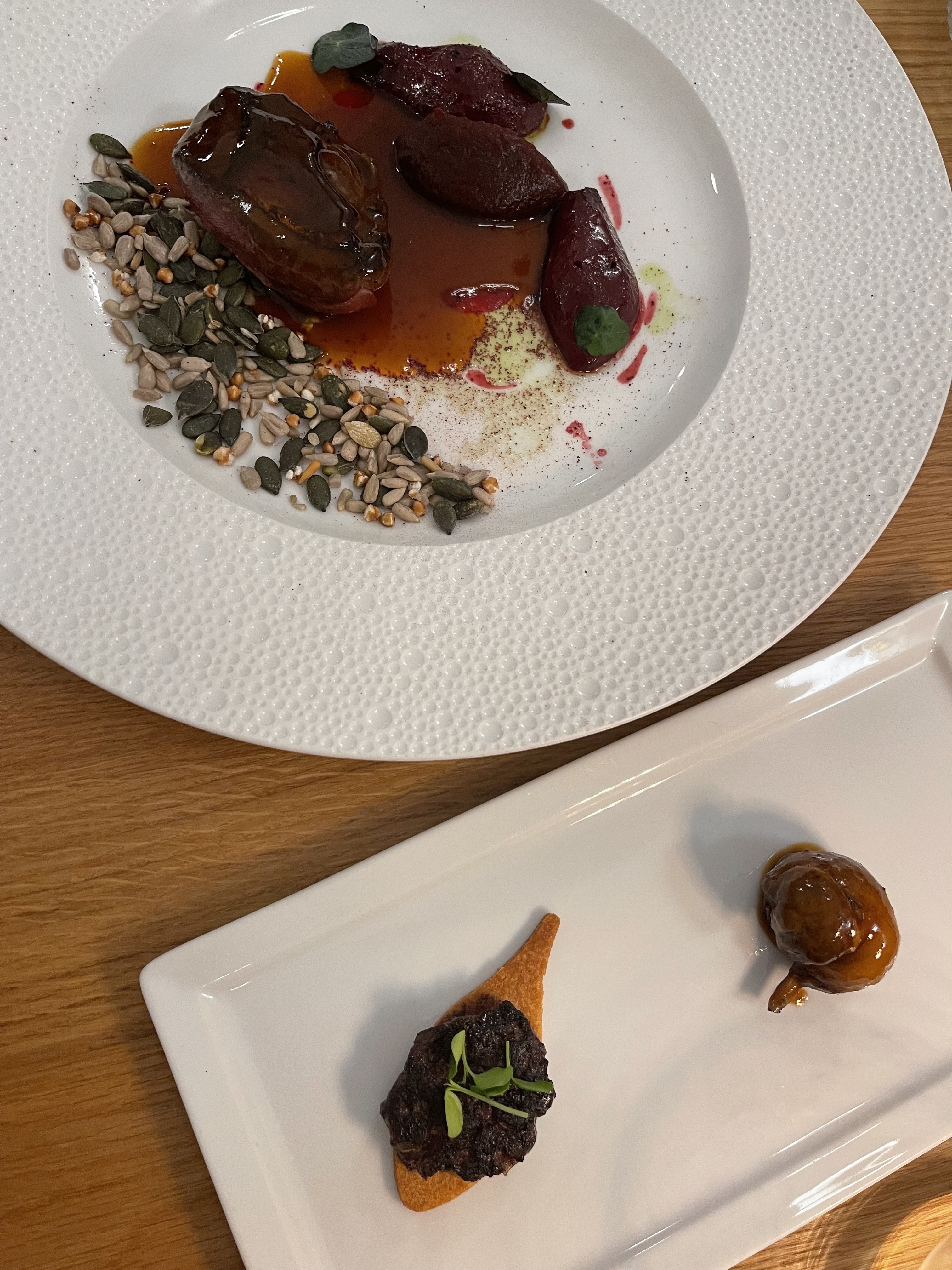 Endroit cosy entrée et mise en bouche très bonne mais le ris de veau et la lotte sont 2 plats dont les texture sont à risque surtout pour le ris de veau trop mou dommage le dessert est originale à base de beternut ;pas trop sucrée ! L addition est correct à se faire sa propre idée!!!