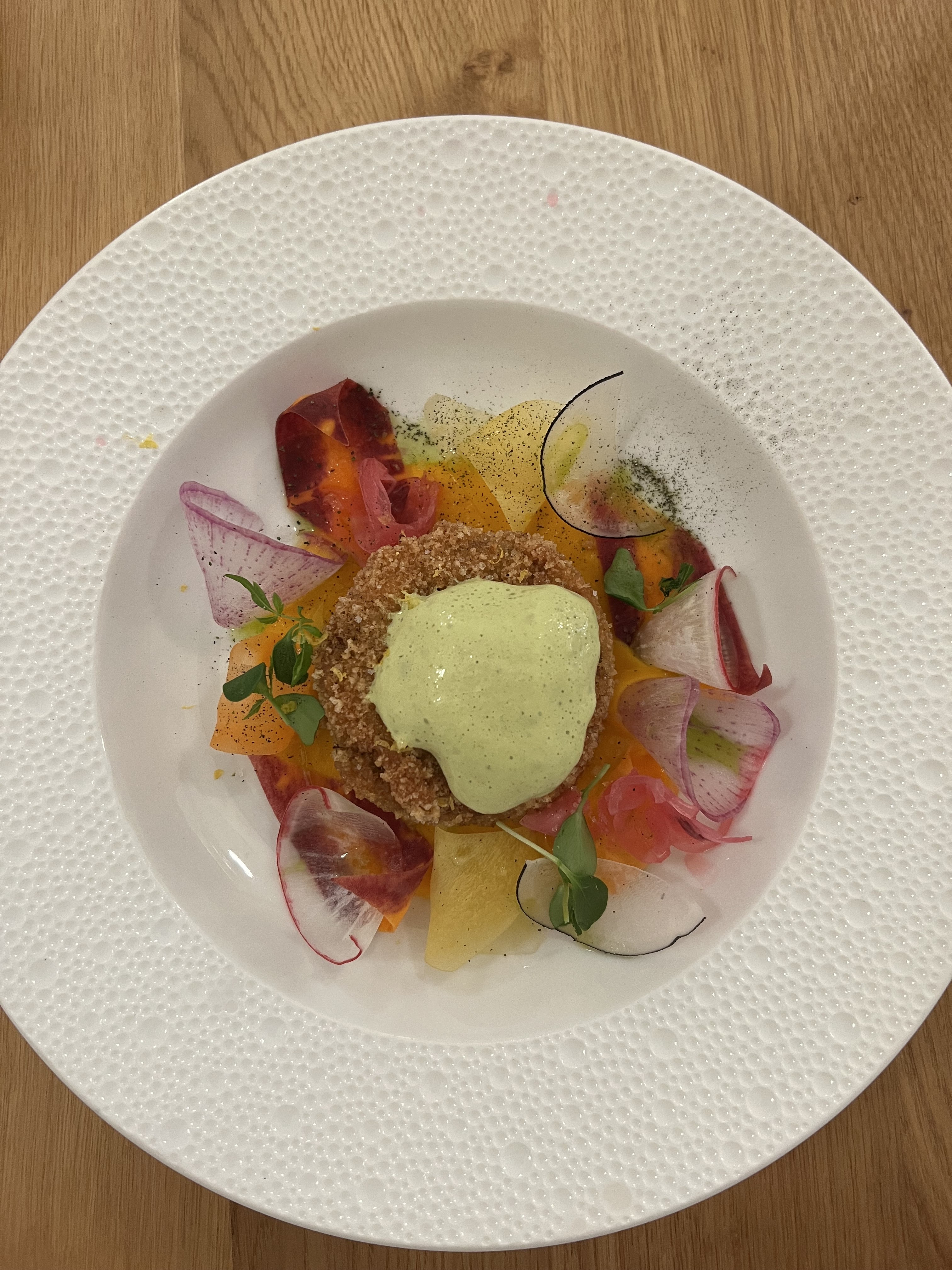 Un régal pour les papilles et pour les yeux. La cuisine, exceptionnelle, est un hommage à la nature, savoureuse, étonnante, colorée. Le service est de grande qualité. C'est une adresse incontournable !