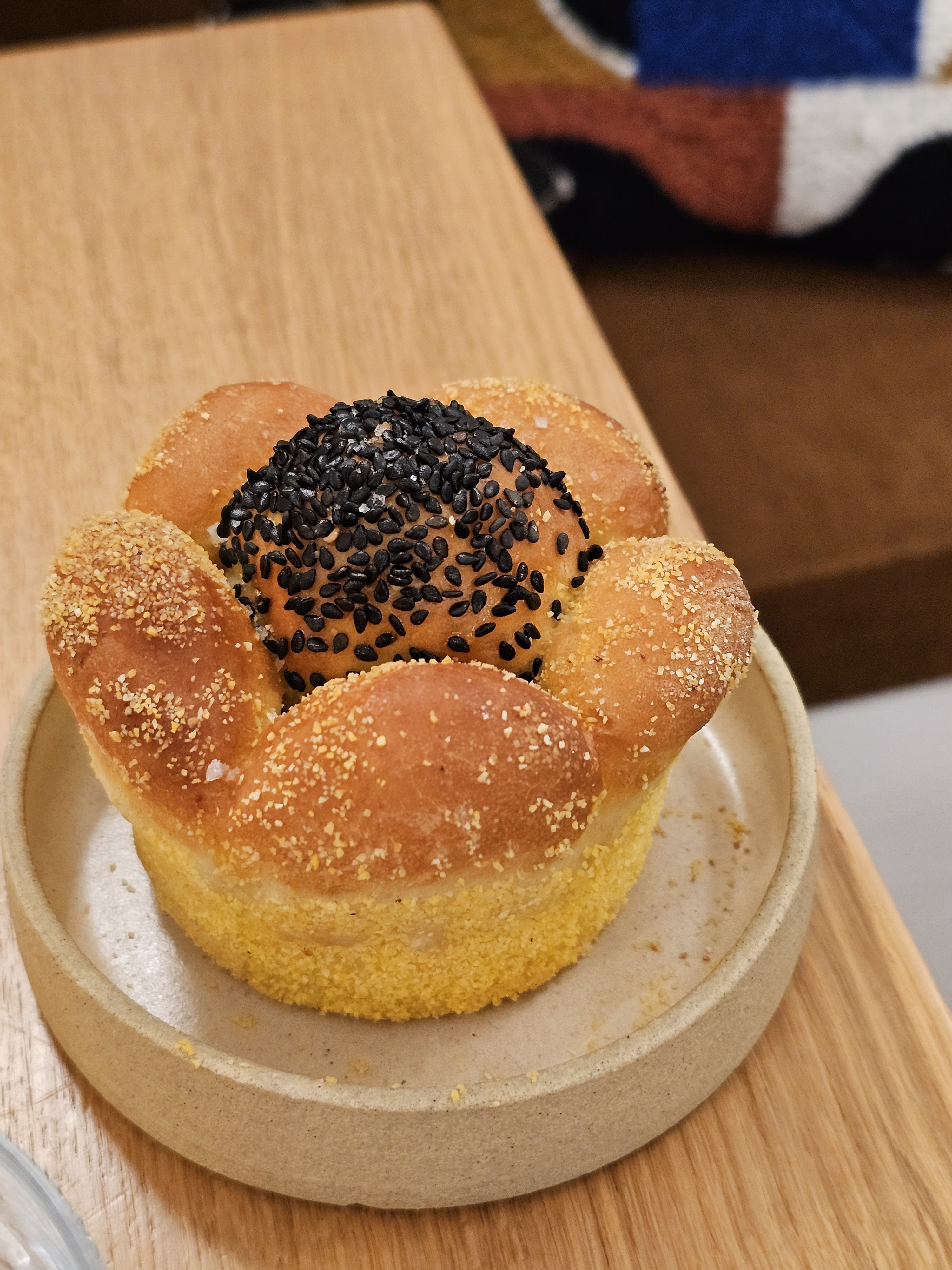 Déjeuner du jour très riche en saveur ; les mises en bouche : un régal —> le cookie fondant ( une merveille) Belle découverte