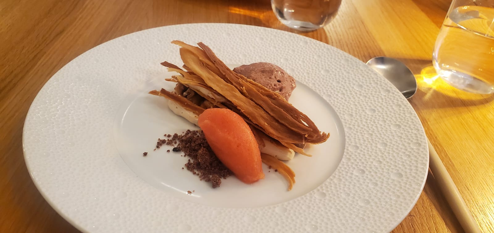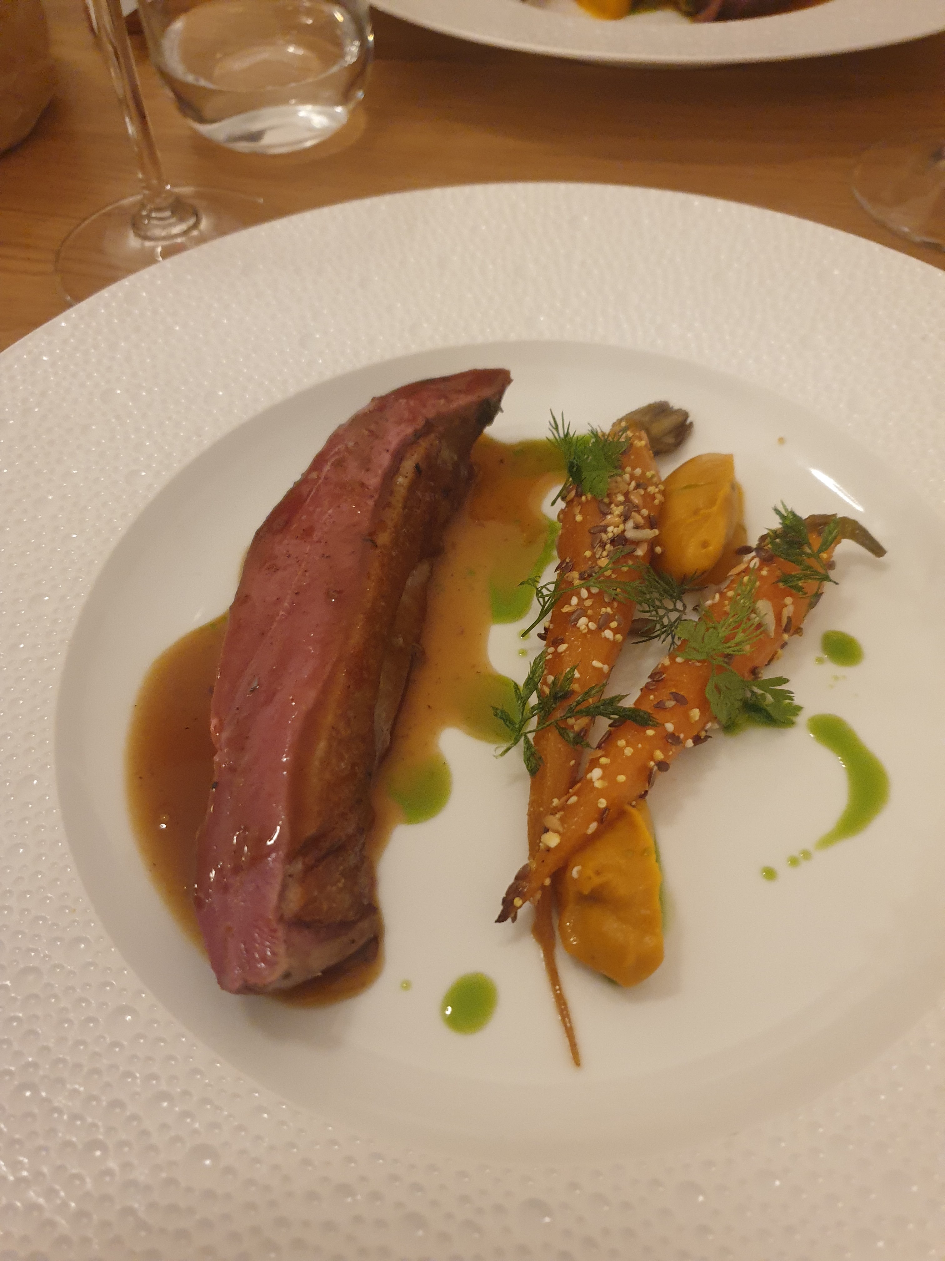 Tout simplement parfait ! Chacun des services du dîner était une découverte de saveurs délicates. La présentation était un régal des yeux qui préparait au régal des papilles. Le grand talent du chef est valorisé par Clémentine qui nous présente les plats en grande professionnelle mais aussi avec grâce et simplicité. Enfin, le décor dépouillé de la salle nous rappelle que l’essentiel est dans nos assiettes ! Ne doutons pas que tous ces talents conjugués augurent d’un avenir brillant