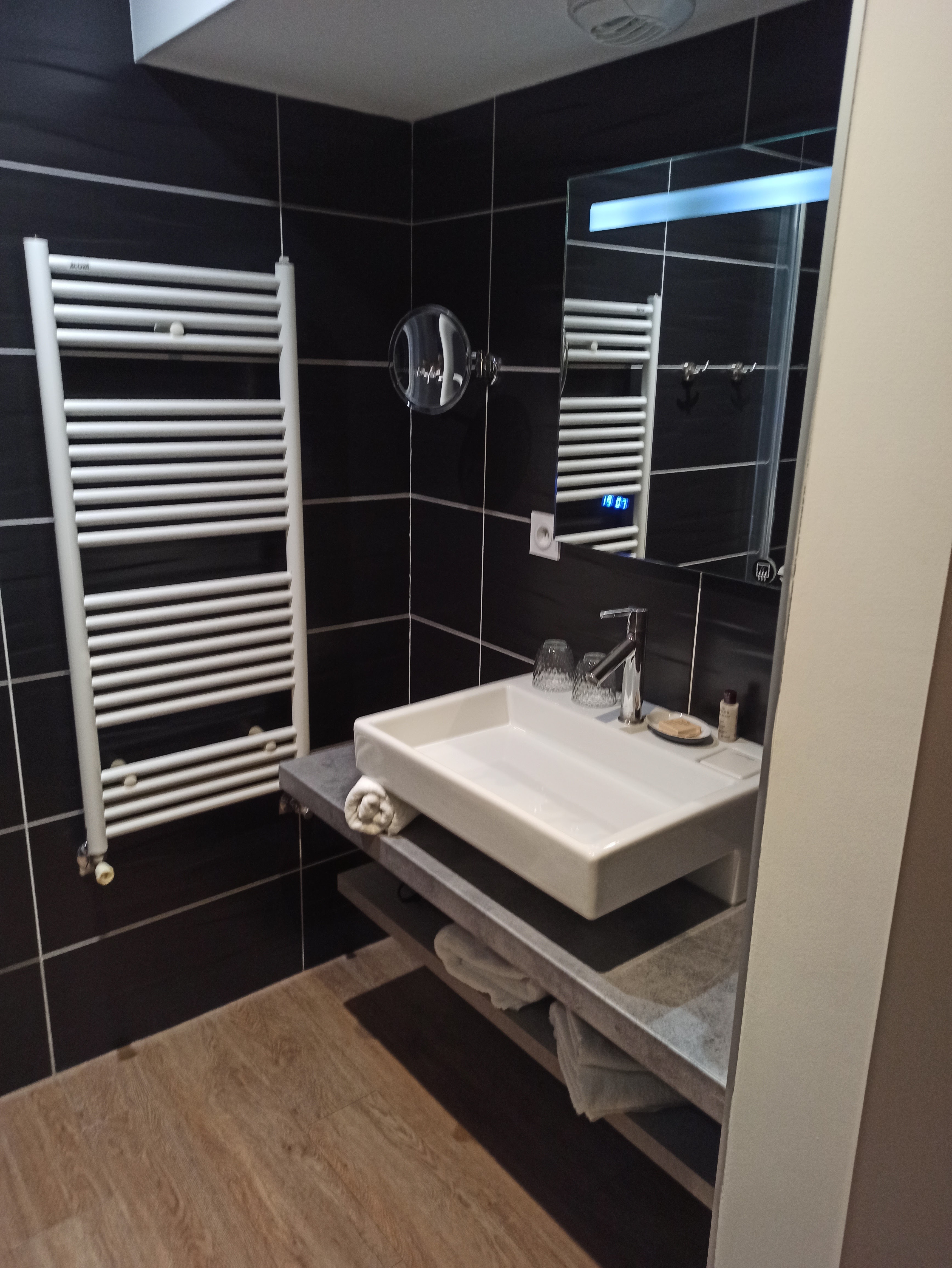Weekend de janvier à deux, la chambre 32 est une chambre spacieuse au calme, vue sur le phare. Le mobilier est de style cabine de bateau, le lit est très confortable, thé et café eau à disposition, produits Nuxe, chaussons, peignoirs douillets. Le spa est très bien, l'esthéticienne aux petits soins. La piscine également est très agréable après le soin pour un moment de détente. Tout le personnel est très gentil, le petit déjeuner magnifique également. Les petits points à rectifier ne sont pas énormes mais comme c est un quatre étoiles, ça pique un peu: salle d eau trop petite, porte de douche inutile, les joints noirs de la douche peuvent être repris avec du bicarbonate ou les changer tout simplement, la baignoire à l extérieur de l espace douche avec une vitre qui donne sur la chambre n'est pas pratique voire inutile autant faire un grand espace bain, papier toilette trop fin, moquette agréable mais vieillissante, enfin le placard de l espace piscine qui a pris l eau devrait être démonté, c'est pas joli de voir du bois qui s effrite. Ça détonne avec votre très belle piscine. Dans l ensemble, j ai adoré votre établissement et je le recommanderai sans faute.