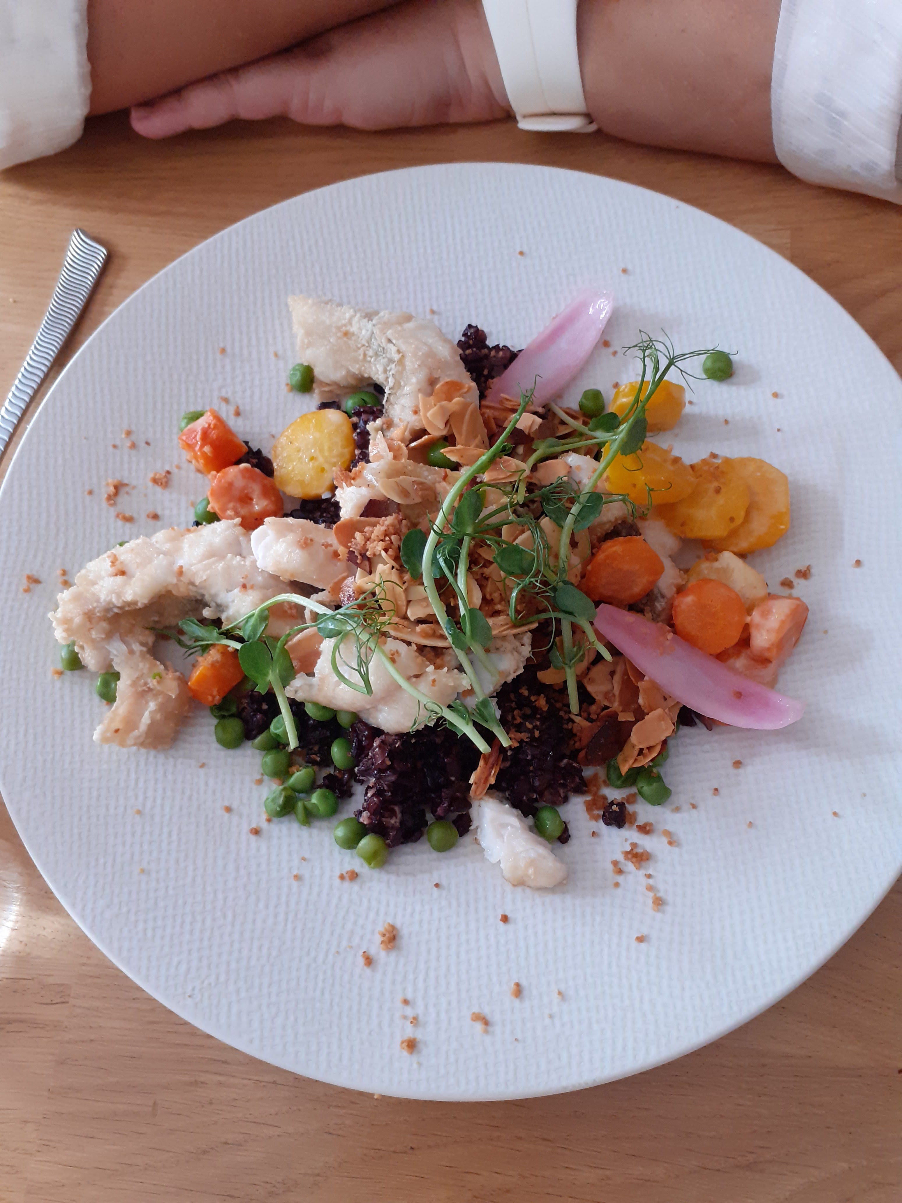 Repas digne d'un grand chef tant pour les saveurs que pour la présentation !le feuilleté et ses champignons est une tuerie, le poisson excellent ! Un bel espace pour se détendre avec une belle terrasse.👍👌 A renouveller sans modération.