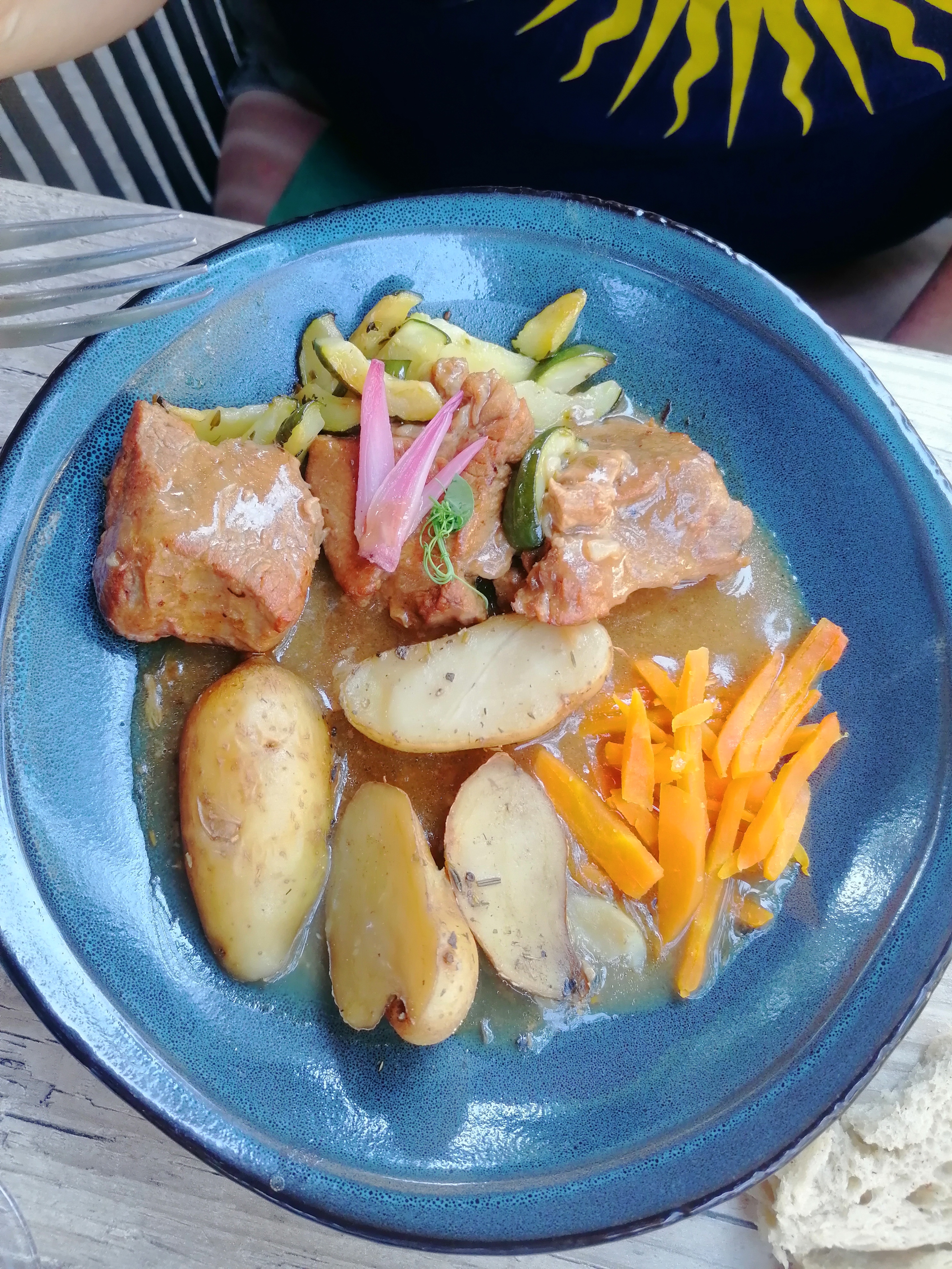 Nous nous sommes arrêtés pour déjeuner, alors qu'ils étaient amarrés à Pontailler, nous avons pris le Menu du Jour, d'un bon rapport qualité-prix et très savoureux. La terrasse était pleine, dois-je en dire plus.