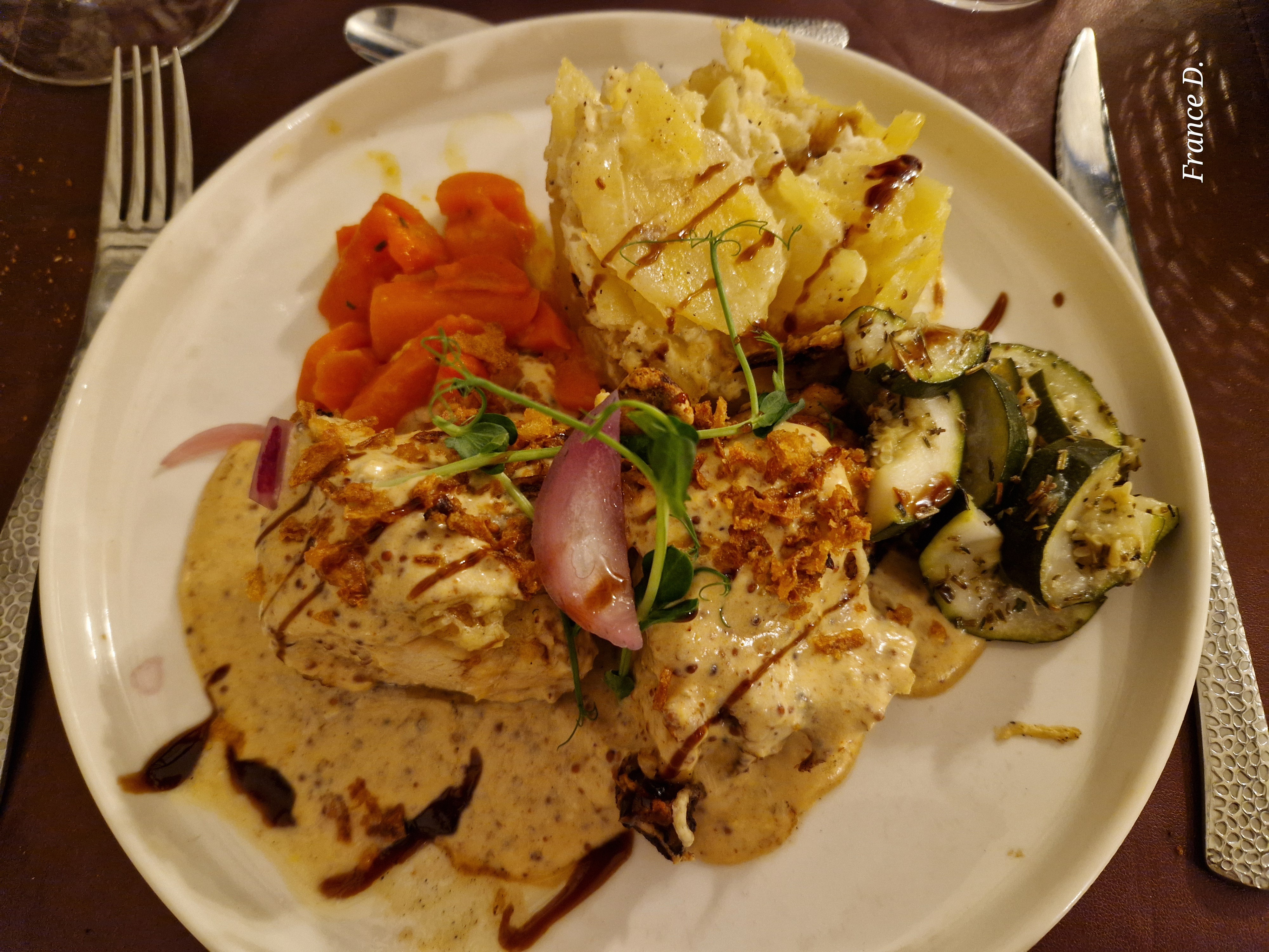 Un magnifique repas tant préparation que présentation, personnel bienveillant, bon rapport qualité prix, je recommande vivement les Marronniers