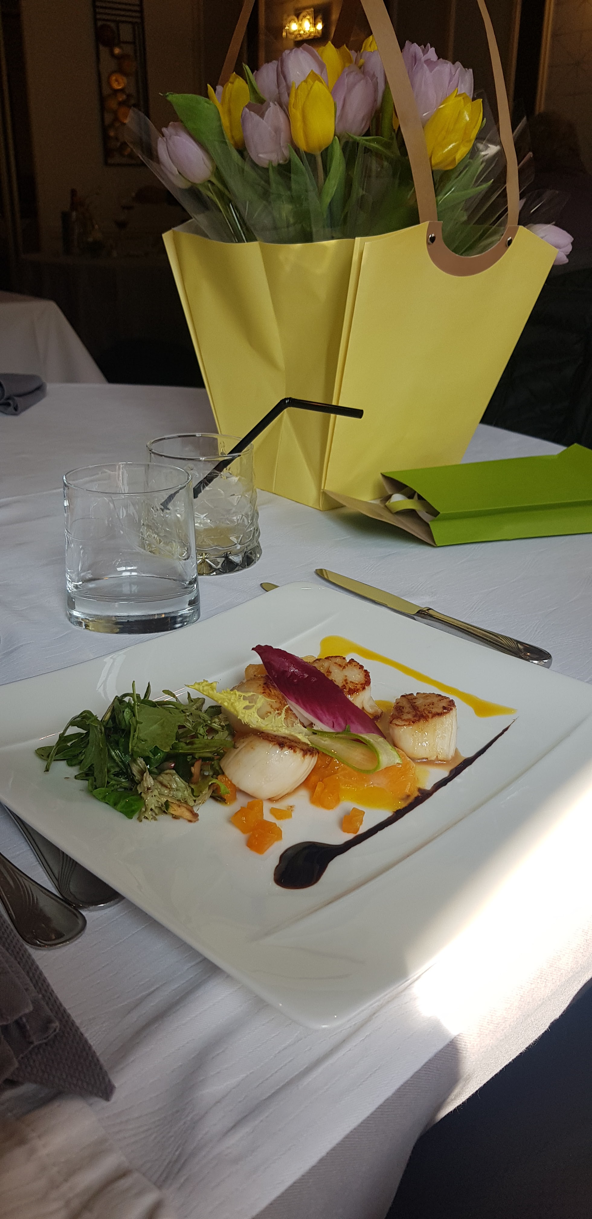 Nous avons passe un très bon moment.repas excellent, original,très belle présentation. Nous avons pris un accord mets vins avec le repas des amoureux.