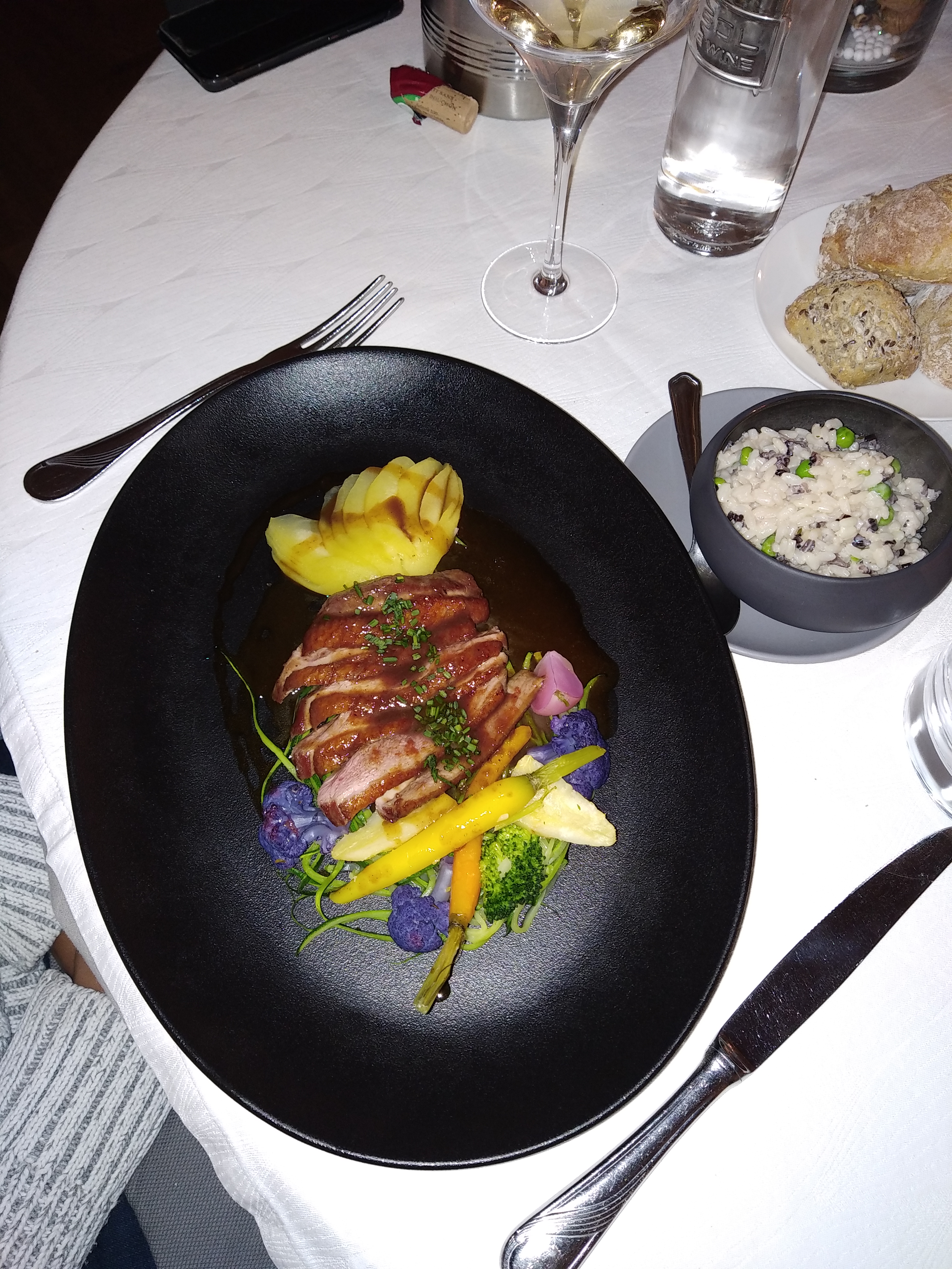 Bon accueil belle carte mais !! Service moyen notre entrée servie à la table voisine et remise directement sur notre table aprés que les voisins le fasse remarquer à la patronne qui avait fait l’erreur !!! Cela refroidit en début de repas Pas digne d’un restaurant de se niveau !!! Accompagnement du plat moyen, risotto Sans saveur Dessert, beaucoup trop de chantilly !!! Glace fondue, bref choux à la chantilly !! Malgré les commentaires élogieux sur se restaurant pas de chance ce dimanche !!!! A Eviter