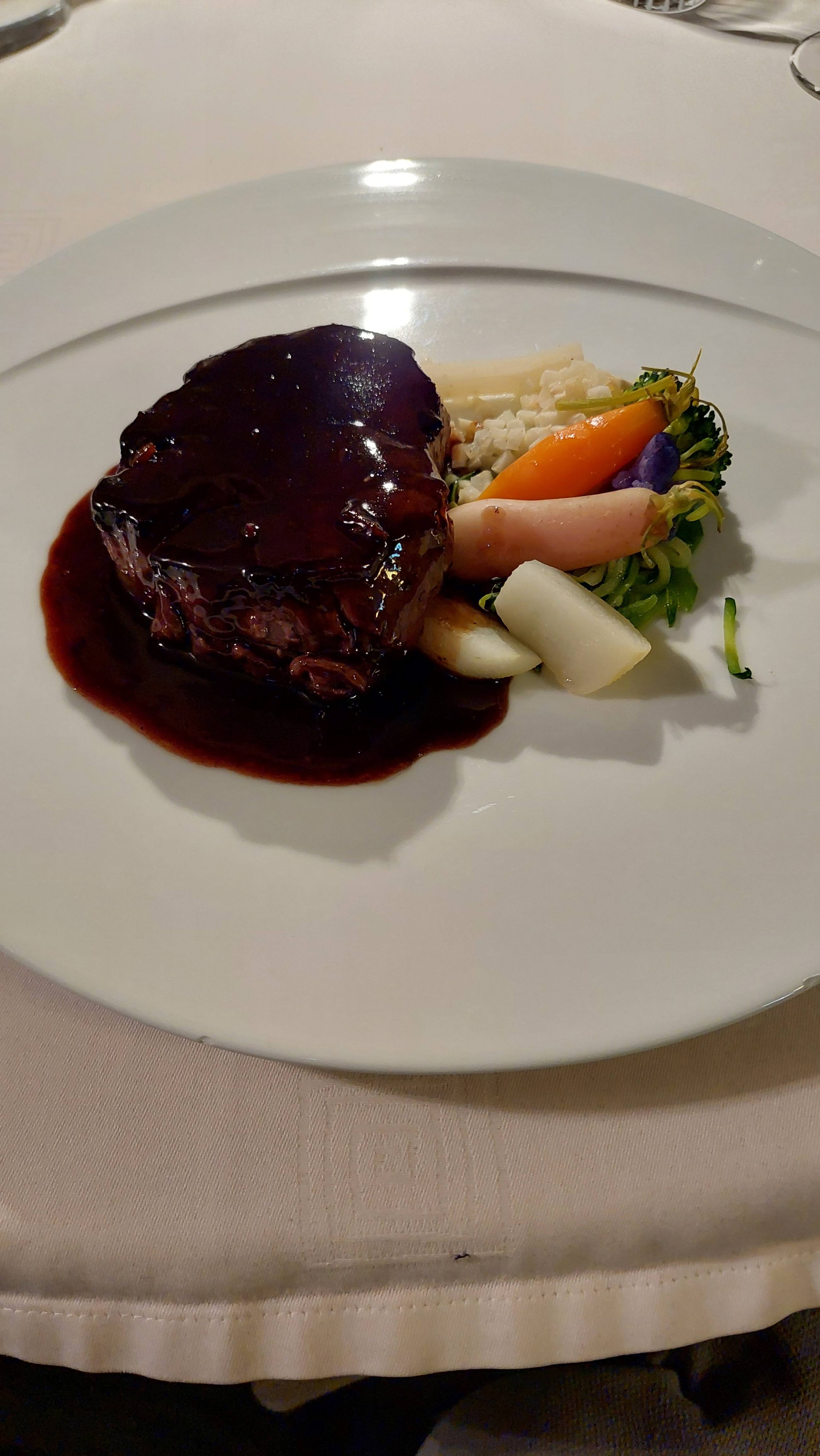 Le repas tres bon,service impeccable, beau décor de noël, avons passé un moment super