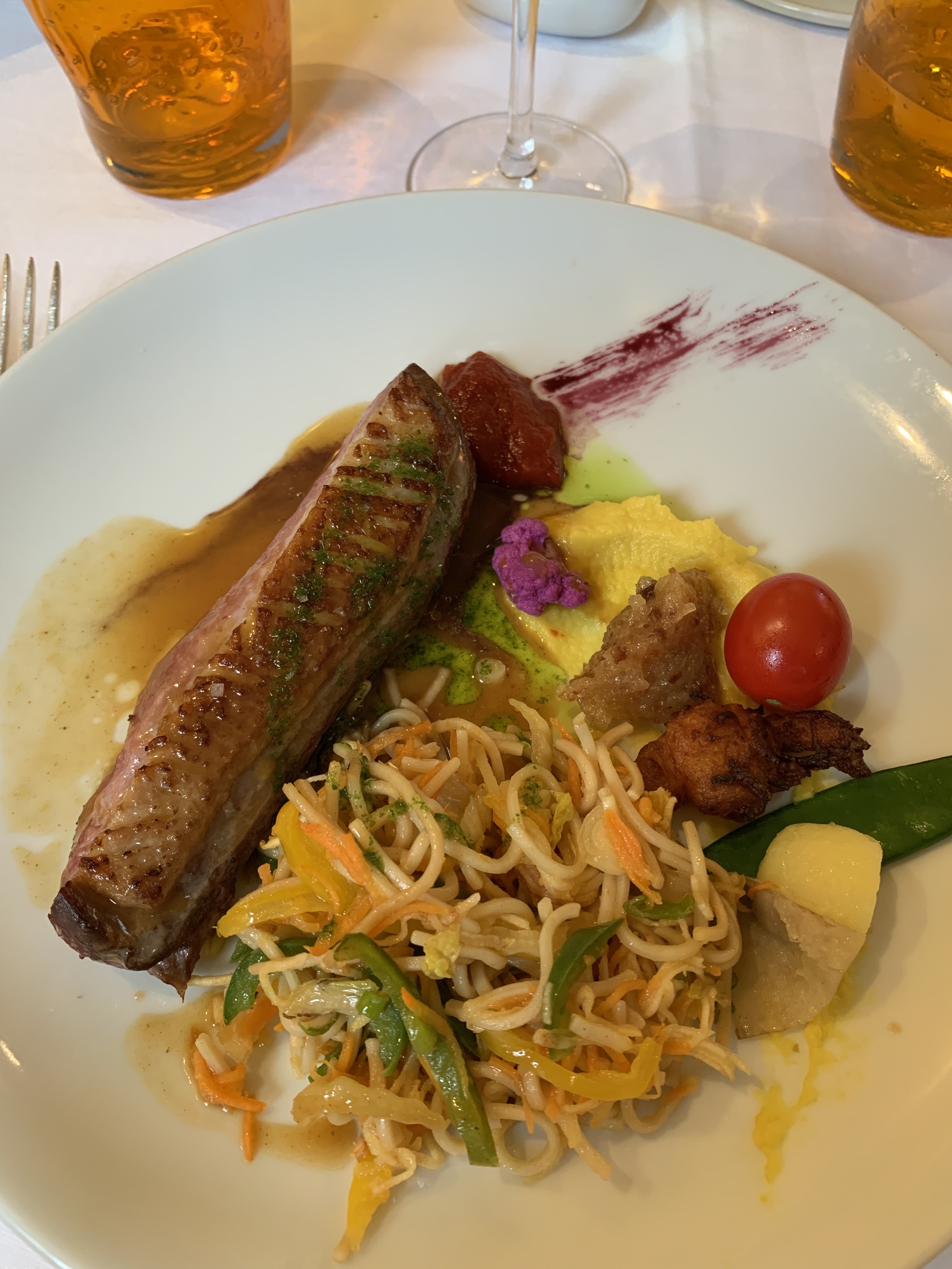 Une cuisine traditionnelle avec une touche asiatique et des saveurs sucrées salées remarquables. Mention spéciale pour la purée d ail que je n avais jamais goûté avant !👍