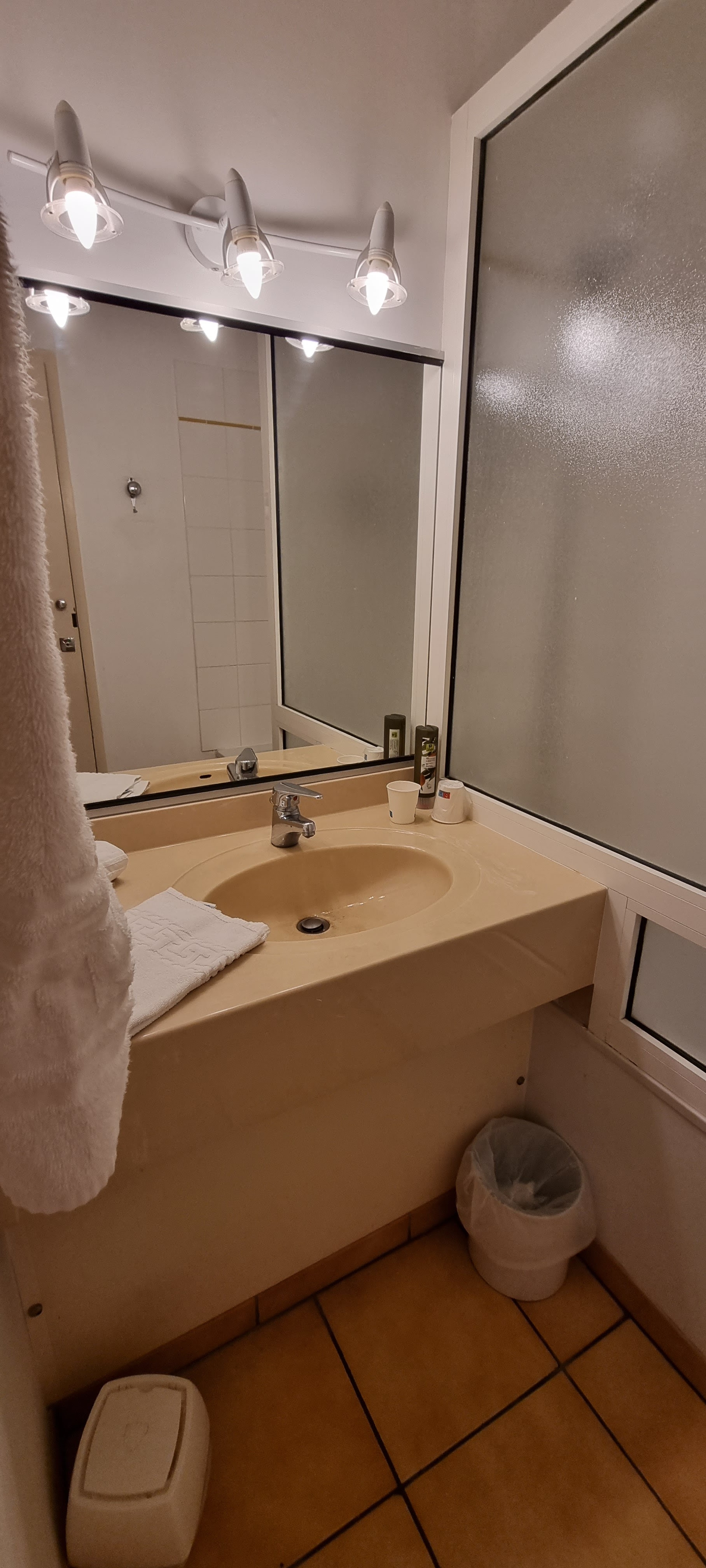 La partie où nous avons dormi est un peu vieillotte mais le personnel étant très sympa, on en tiendra pas rigueur. Par contre, sortir de la baignoire/douche est un exercice extrêmement risqué vu le côté très glissant de la chose. Ma femme en a fait la mauvaise expérience et en garde des stigmates.