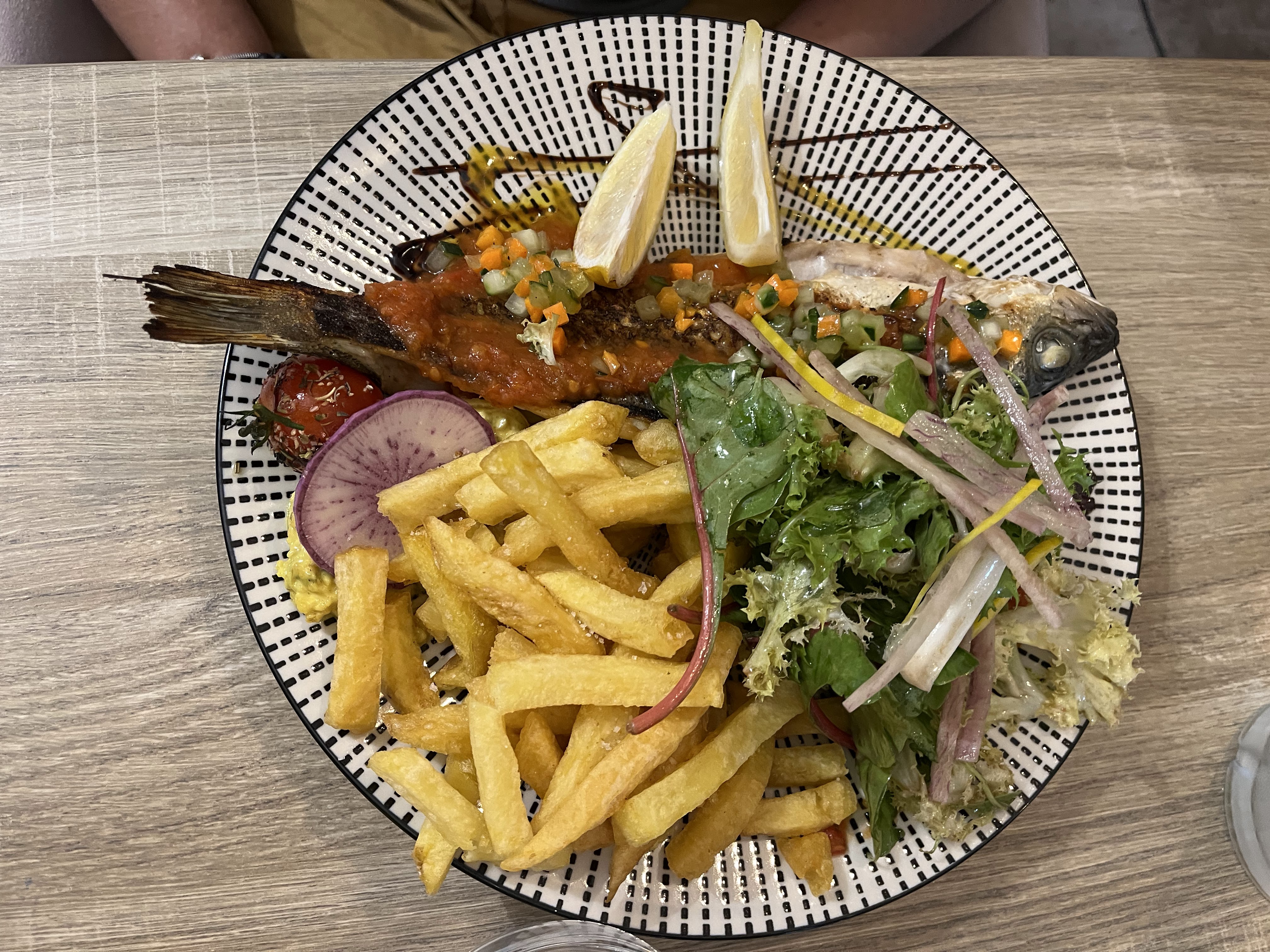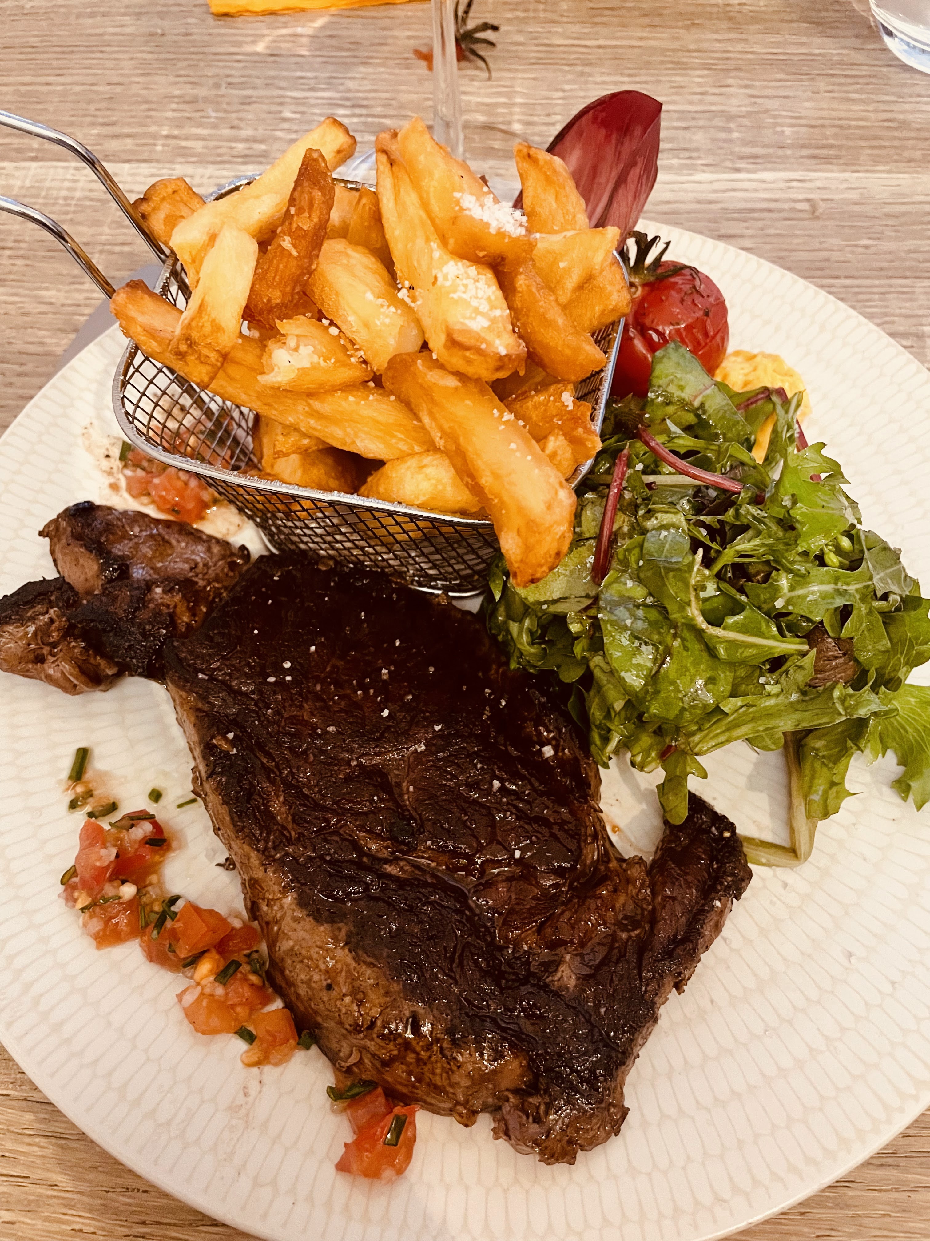 C’était TROP bon ! On s’est juste peter le bide en fait. Petit os à moelle des familles en entrée et jambon ibérique extraaaa. Les plats on s’est régaler ! Petit verre de vin blanc pour faire glisser tout ça. Les serveurs trop trop gentils. Bref ce restau c’est la BASE si vous passez dans le coin. Niveau tarif ça va on a pas eu de malaise à l’addition.