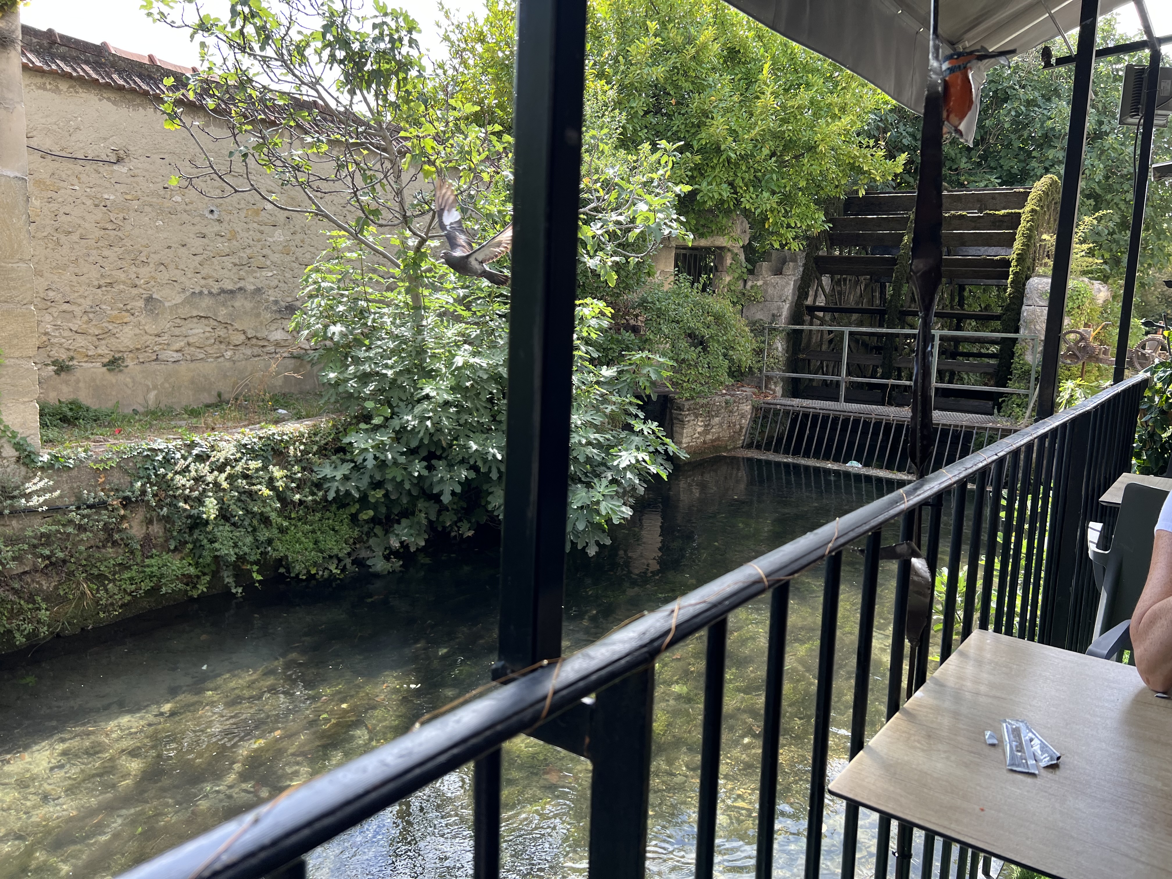 Nous avions réservé la veille suite aux avis laissés et avions demandé à être placé en terrasse près de l'eau; ce qui a été respecté. Joli extérieur avec un moulin et le passage de qqs canards. Le personnel est très agréable et disponible. Repas copieux et de qualité. Le fois gras était excellent. L'entrecôte de très belle taille. Coup de cœur pour le tatin de légumes et la petite tomate provençale en accompagnement. Bon rapport qualité prix. Nous nous sommes régalés. Nous recommandons +++