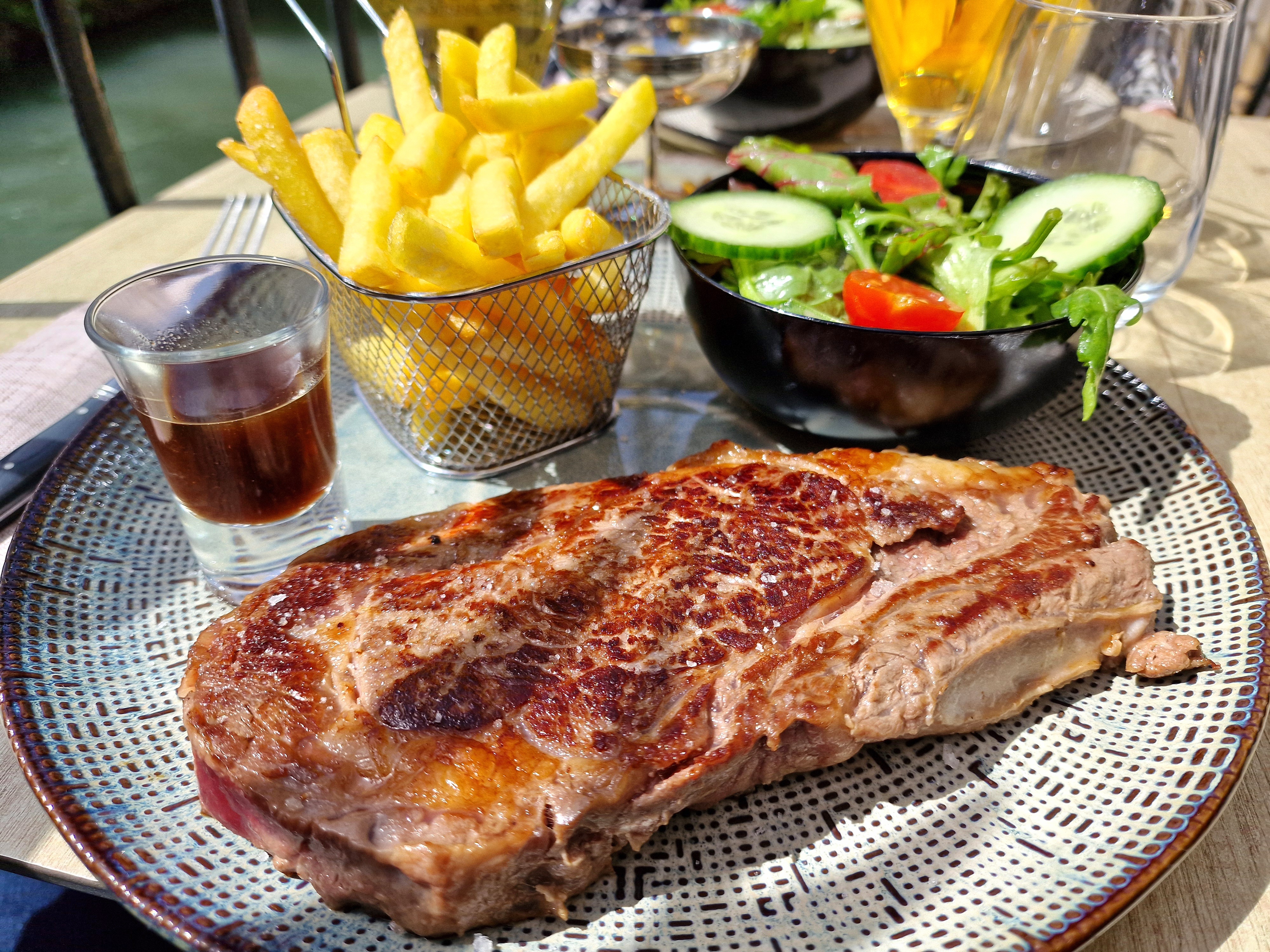 La terrasse en bord d'eau... Et une viande rouge délicieuse