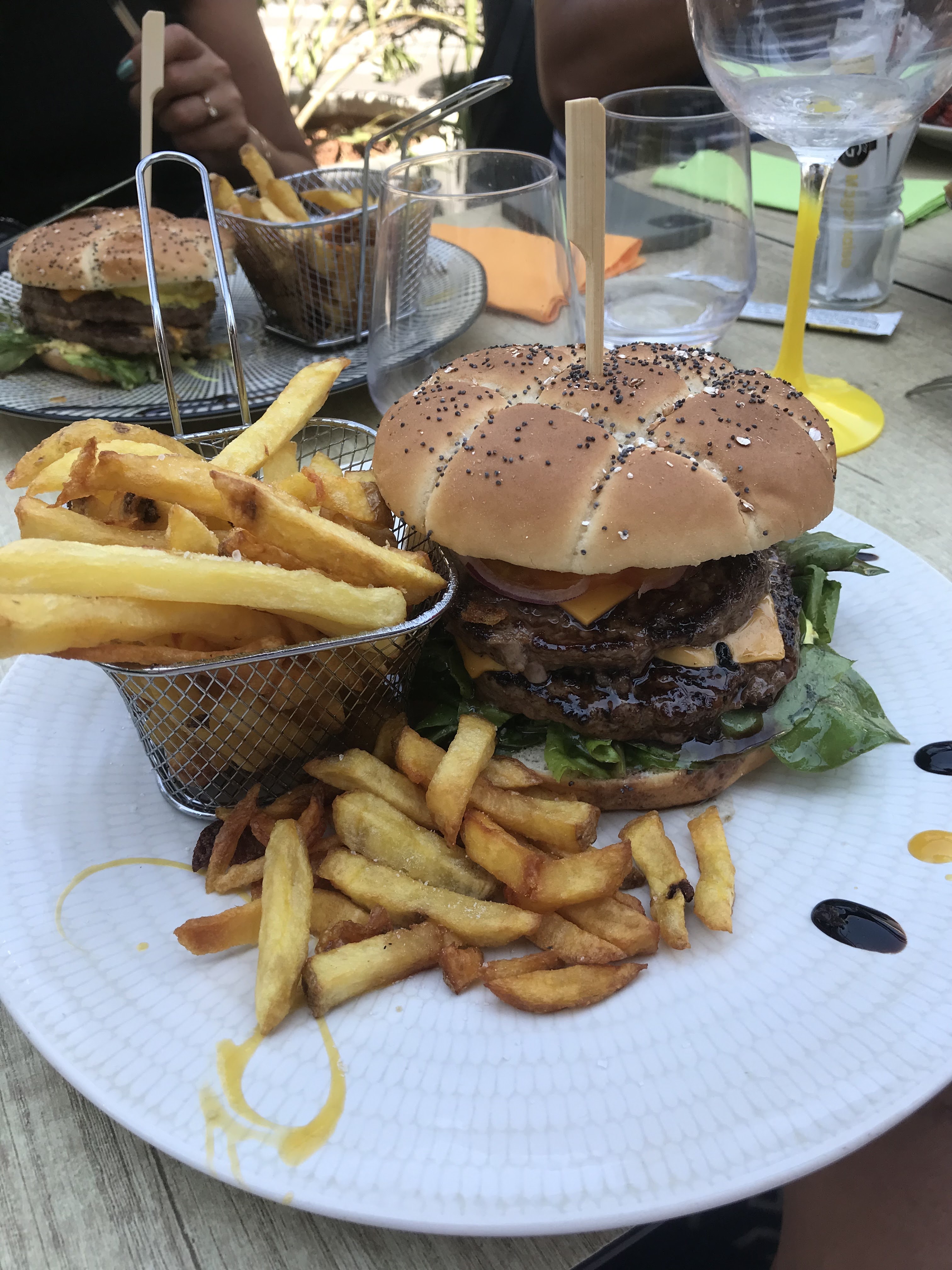 Visité deux fois fin juin 2021. Nous y avons déjeuné en salle mais le dîner en terrasse à l'arrière était encore plus agréable. Pour deux plats, deux desserts et une eau maison, il faut compter environ 55€. Mais attention, les portions sont copieuses et la nourriture délicieuse. Pour ma part j'ai pris deux fois le double cheese et ce fut un régal. Les frites maison ainsi que la sauce sont terribles, l'assaisonnement est parfait. Mais comme dit dans le titre, tout cela ne serait rien sans le service exceptionnel, le sourire de tout le personnel et leur politesse. Ca devient malheureusement rare d'être aussi bien accueilli. Je recommande et je vous remercie encore.