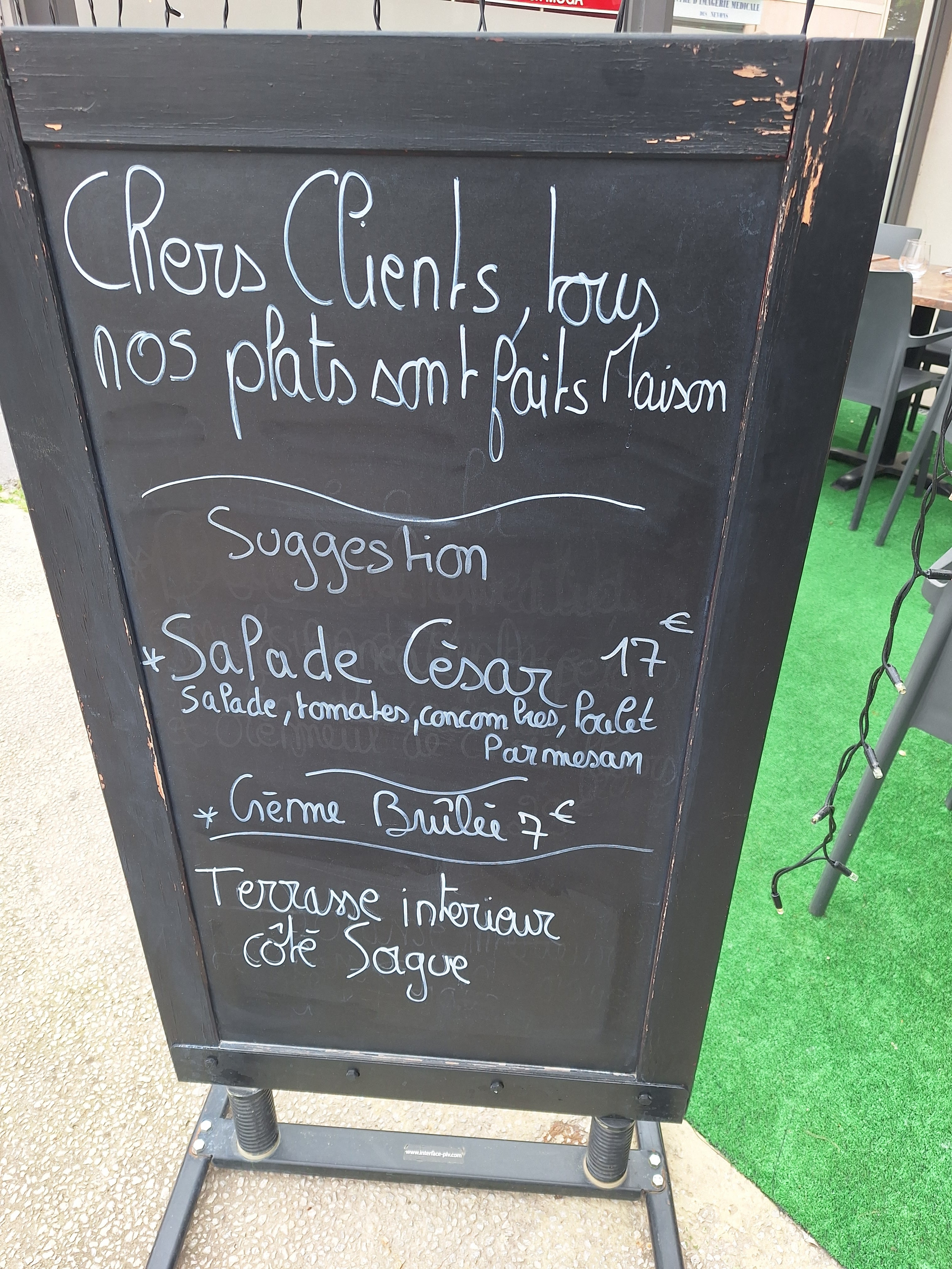 Terrasse agréable. Accueil sympa. Ne pas regarder dans son assiette, pas à la hauteur du prix...